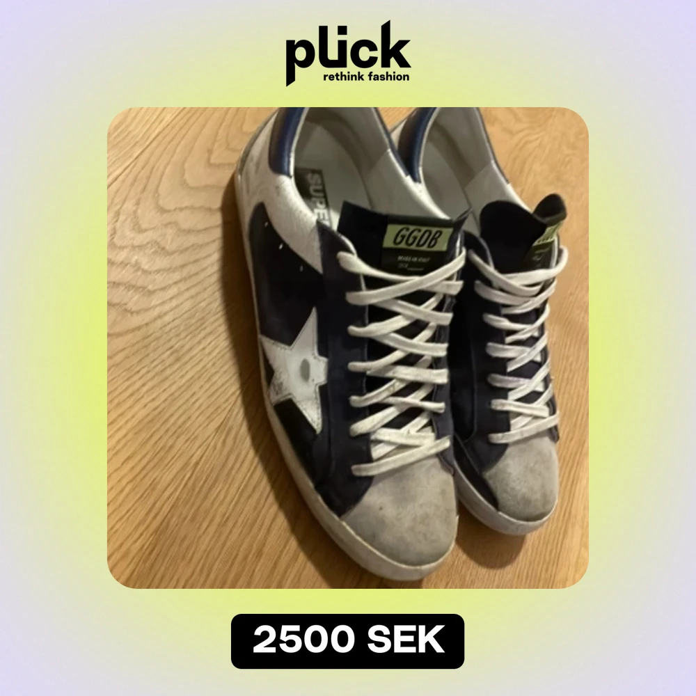 Säljer dessa feta golden goose i fint skick förutom att hälen har börjat släppa lite men det kan fixas med lite lim. Storlek 43 men passar 44. Box tillkommer. Unik färg som kommer få mycket uppmärksamhet