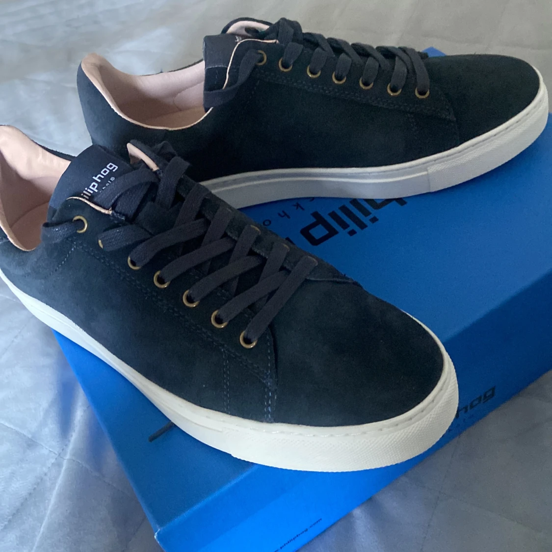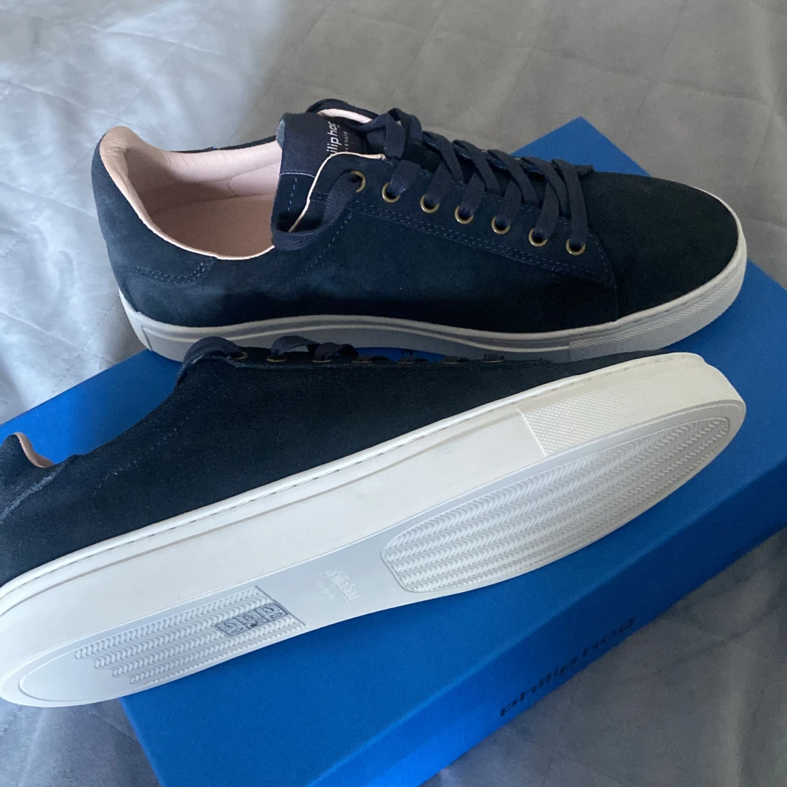 Helt nya oanvända philip hog skor. Aldrig använt, perfekt skick. Navy Blue mocka skor.