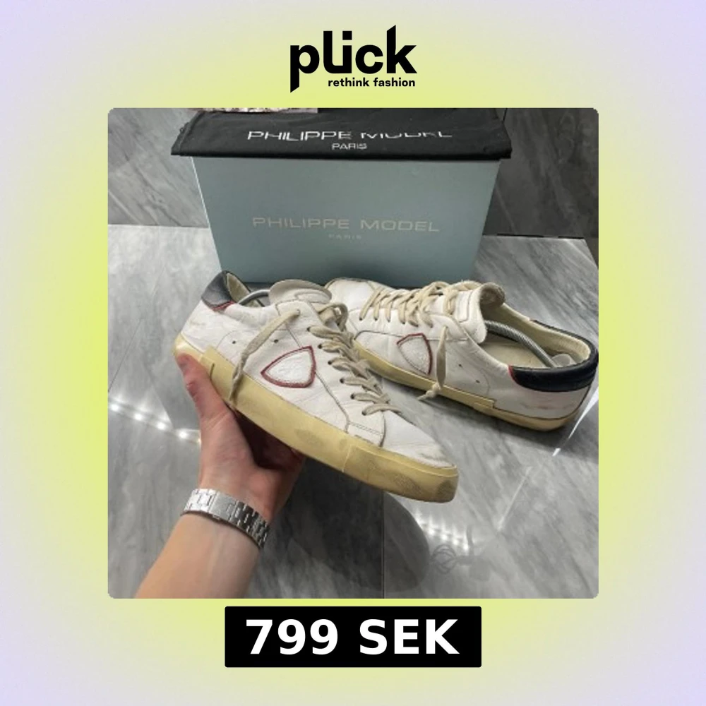Philippe Model sneaker | Dåligt skick | Sitter 0,5 storlek större | Nypris: 4000 | Ingår: box | Skadorna är endast på högra skon |Hör av dig vid minsta fråga eller fundering📩
