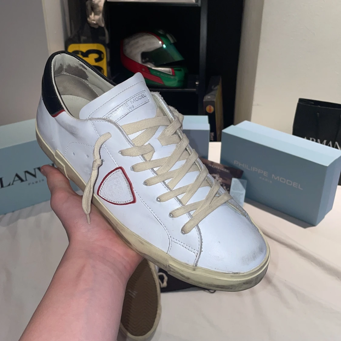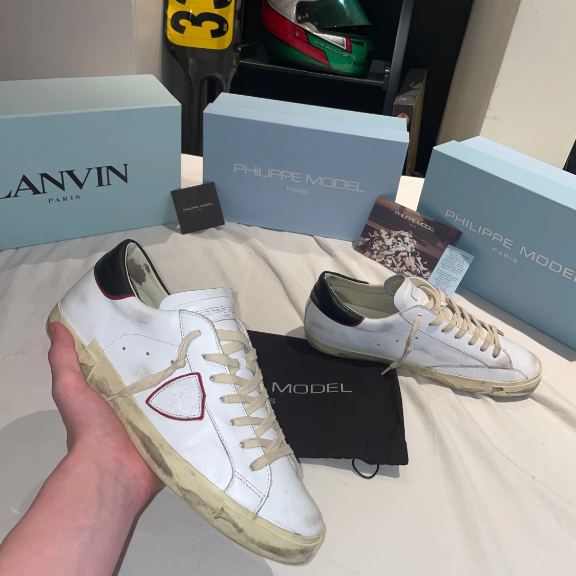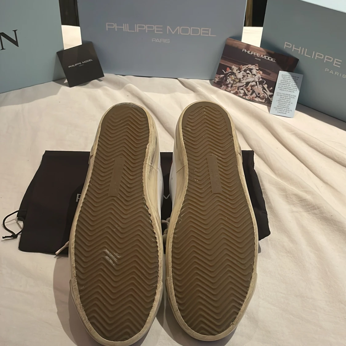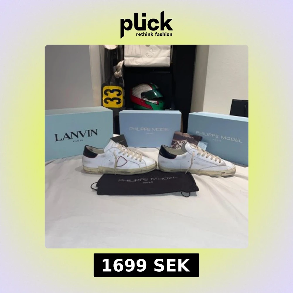 Ett par riktigt snygga Phillippe modell skick 9/10✅ köpta nya från Philippe modells hemsida så kvitto finns👍🏼🔥(box, äktehets kort och dusbag medföljer✅(nypris 3600 mitt pris 1999🔥) (priset går självklart att diskuteras)✅👍🏼strlk 45 men passar lätt 44 då det är den storleken jag har