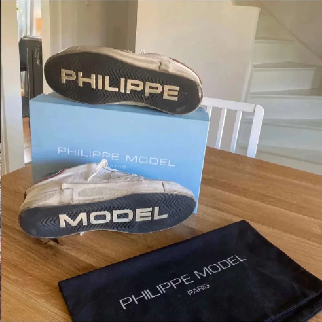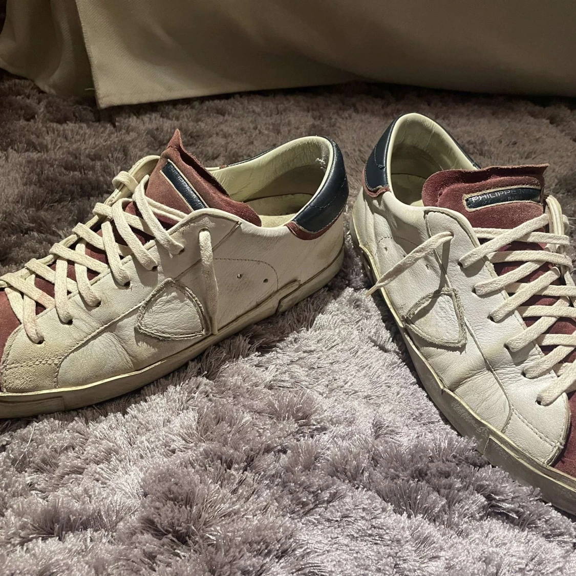 Snygga vita sneakers från Philippe Model med vinröda detaljer och snörning. Skorna har en unik design med märkets logga på sulan. Perfekta för en stilren look. Nypris 2699kr mitt pris 1099kr hör av er vid frågor osv ‼️