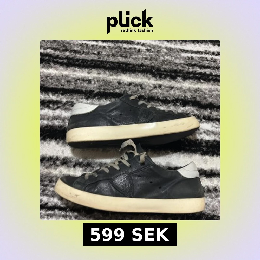 Snygga svarta sneakers från Philippe Model med vit häl och grå snörning. Skorna har en rund tå, platt sula och är tillverkade i skinn med märkets logga på sidan. Perfekta för dig som gillar stilrena och klassiska sneakers med exklusiv känsla.
