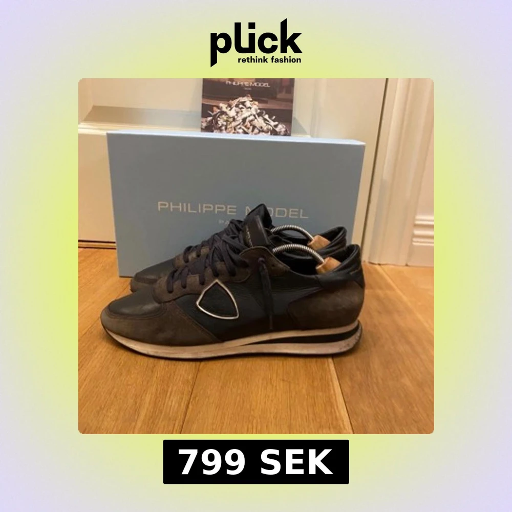Snygga svarta sneakers från Philippe Model med en stilren design. Skorna har snörning och en rund tå, vilket ger en klassisk look. Perfekta för en avslappnad stil med en touch av elegans. Skorna är i storlek 43 och boxen samt kortet ingår. Skorna är lite slitna där bak vilket man ser på bilden och därav detta riktigt bra pris. Hoppas du blir nöjd, SBstyle :)