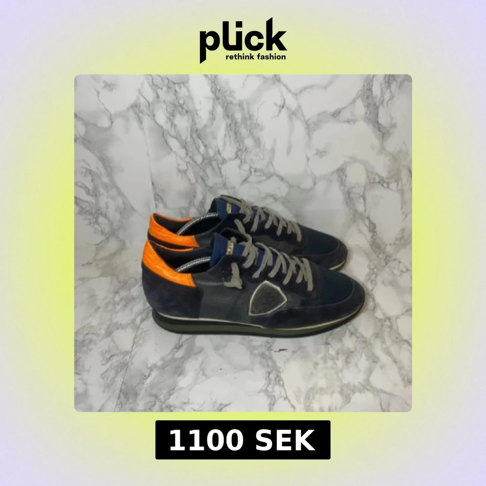Snygga sneakers i blå mocka med detaljer i orange och grått. Skorna har en klassisk snörning och en bekväm sula. Perfekta för en stilren look med en färgglad twist. Storlek 41-42