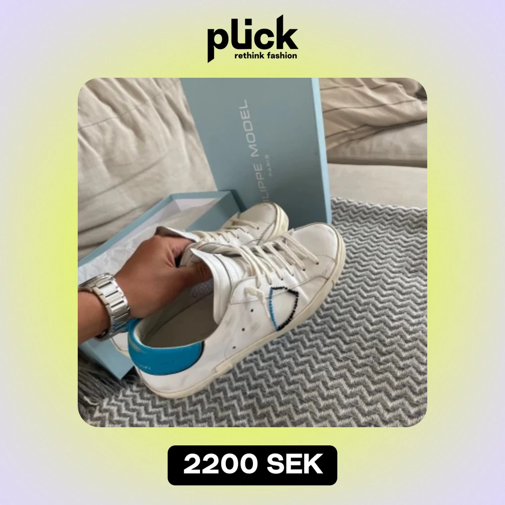 Hej, Säljer nu dessa sjukt feta Phillip model skor som är väldigt unika och sällsynta med den blå färgen på sköna under sula med texten Phillipe model. Storleken är 41 men sitter som 42. Skicket är mycket fint 8/10🤩 Bara att skriva till mig info :)