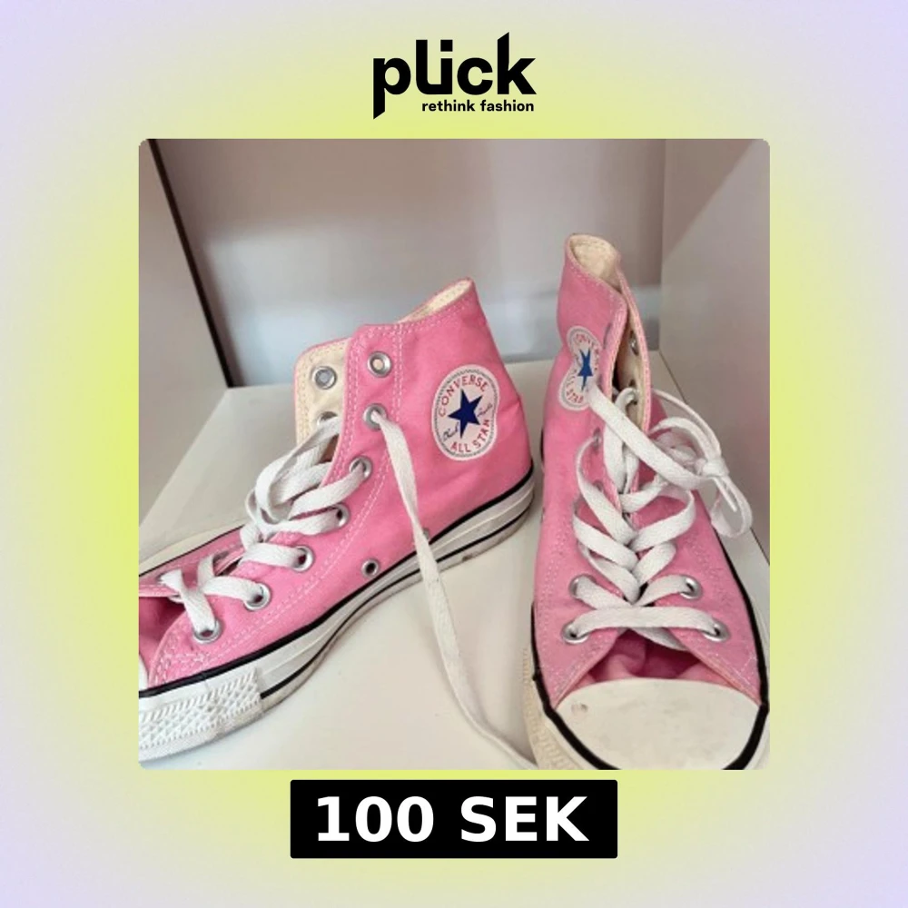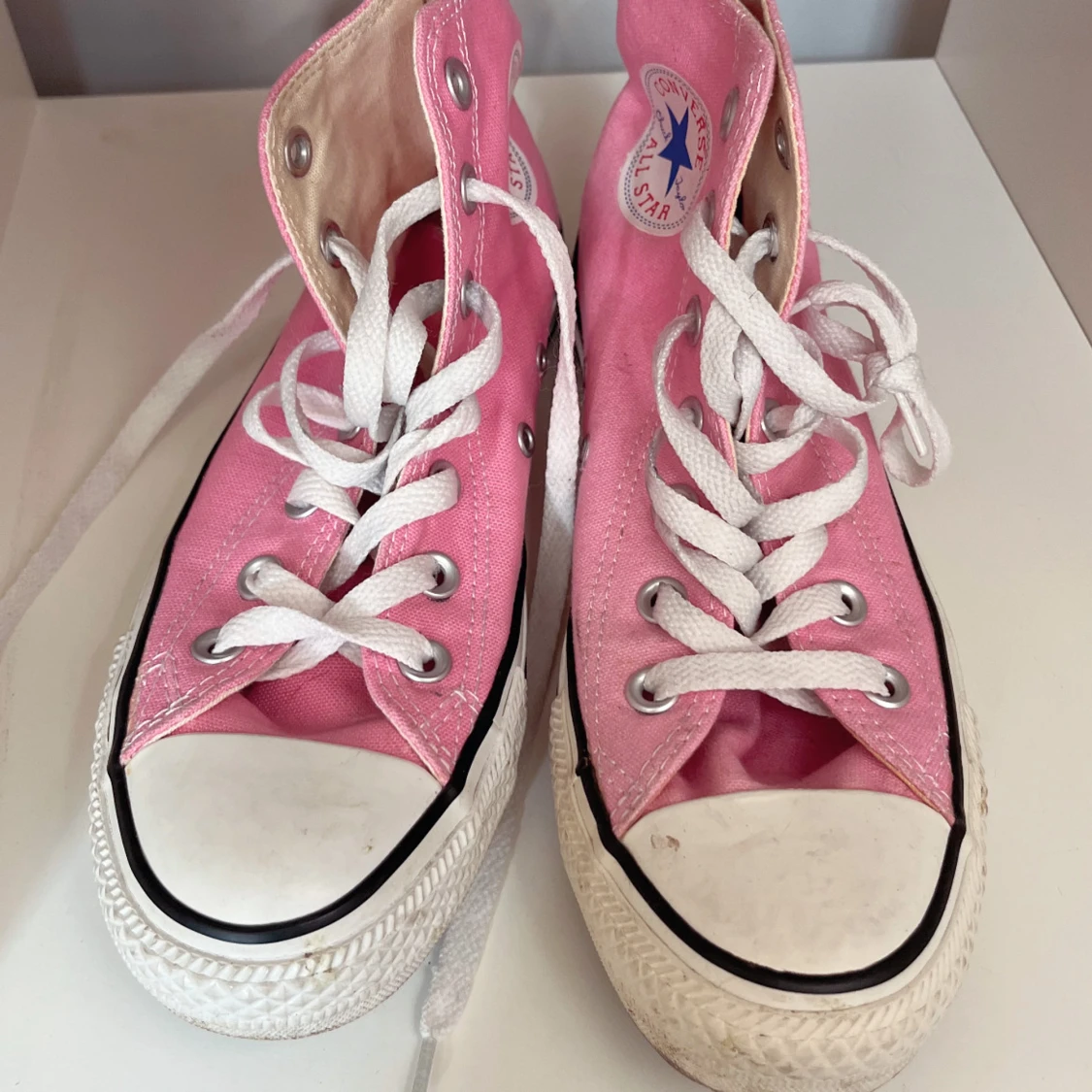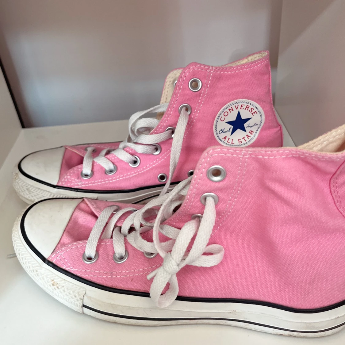 Säljer ett par klassiska Converse All Star high tops i en snygg rosa färg. Storlek 37.5
