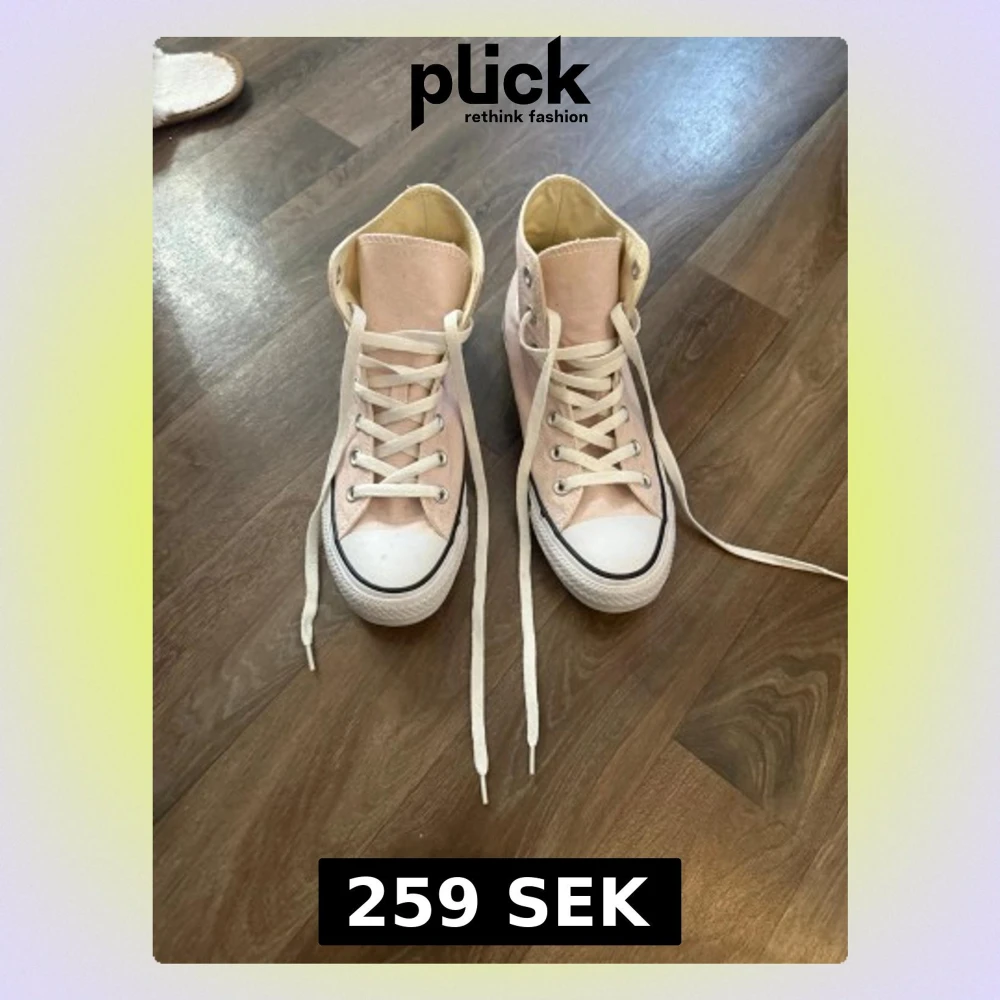 SĂ€ljer ett par Converse All Star ljusrosađSkorna har vit gummisula, rund tĂ„, vita snören och silverfĂ€rgade öljetter. Ikonisk Converse-logga pĂ„ sidan och bak. Super fina och knappt anvĂ€ndađ€