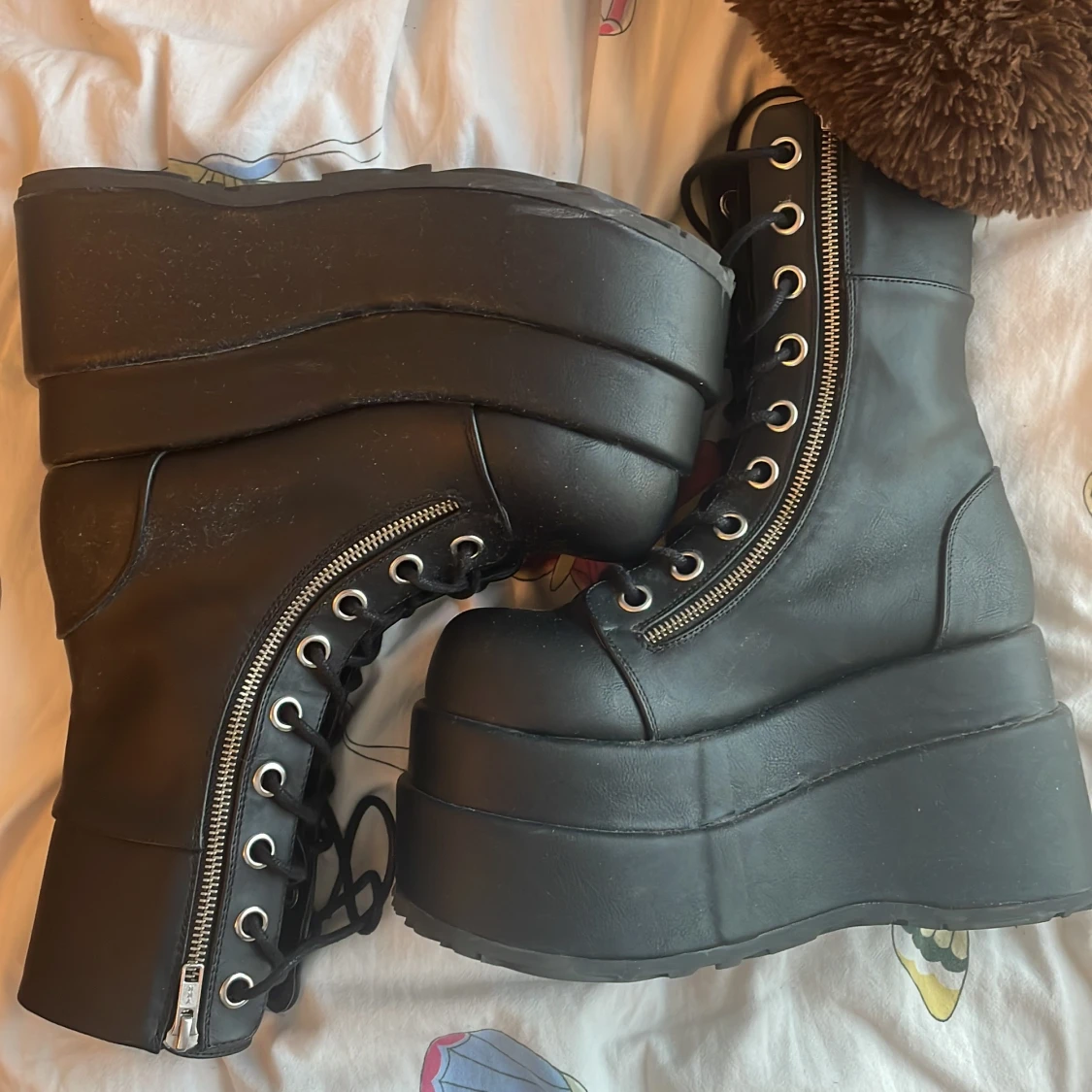 Helt nya demonia-skor! Aldrig använda och är som nya! Säljer pga aldrig fått användning av dom. Köpa för 1600kr + frakt. Säljer för 1200 ink frakt. Storlek 38! Platån är 114 mm hög. Priset kan diskuteras!