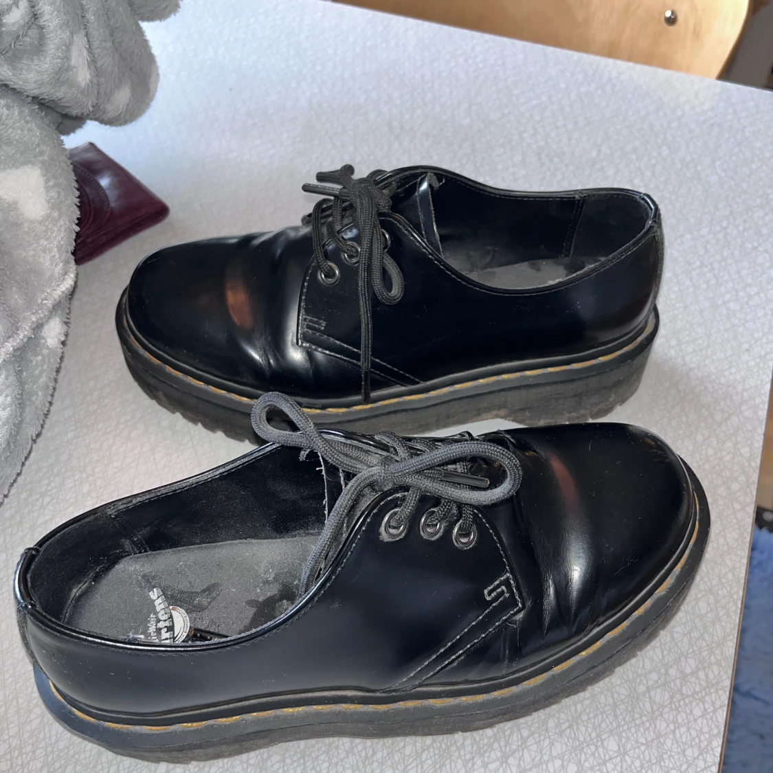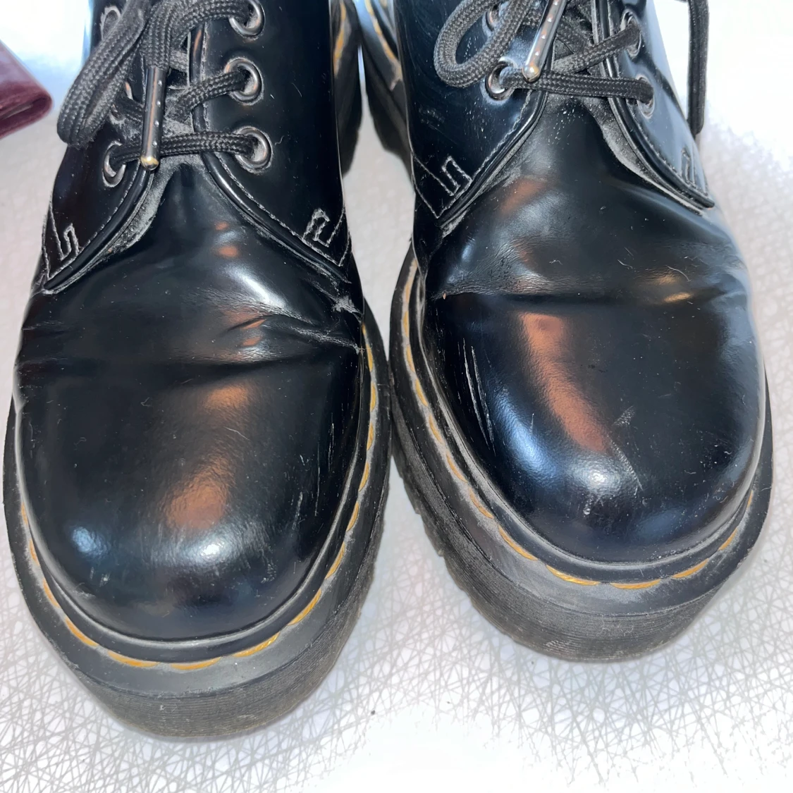 säljer dessa dr martens med platform på ca 3,5cm. i riktigt bra skick förutom några märken på framsidan. pris kan diskuteras