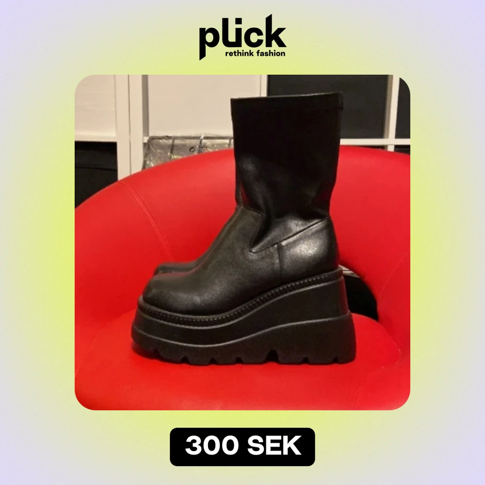 Supersnygga platformskor, köpta här på Plick för 400 kr, så gott som oanvända då och lika nu då jag aldrig haft de utomhus. Storlek 37, jag anser att de är normala i storleken.
