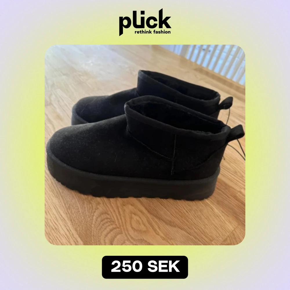 Aldrig använda plattform ”uggs” säljer då jag ångrat mig och hellre vill ha utan platform. Sitter bra i storleken