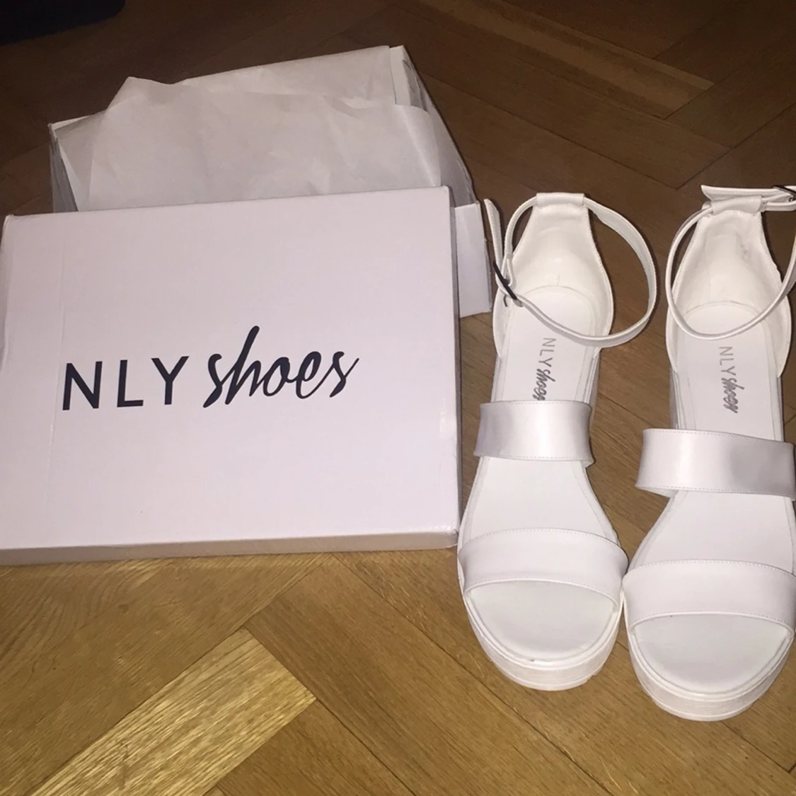 Säljer mina vita skor från Nelly. Aldrig använda utomhus endast testade inne.