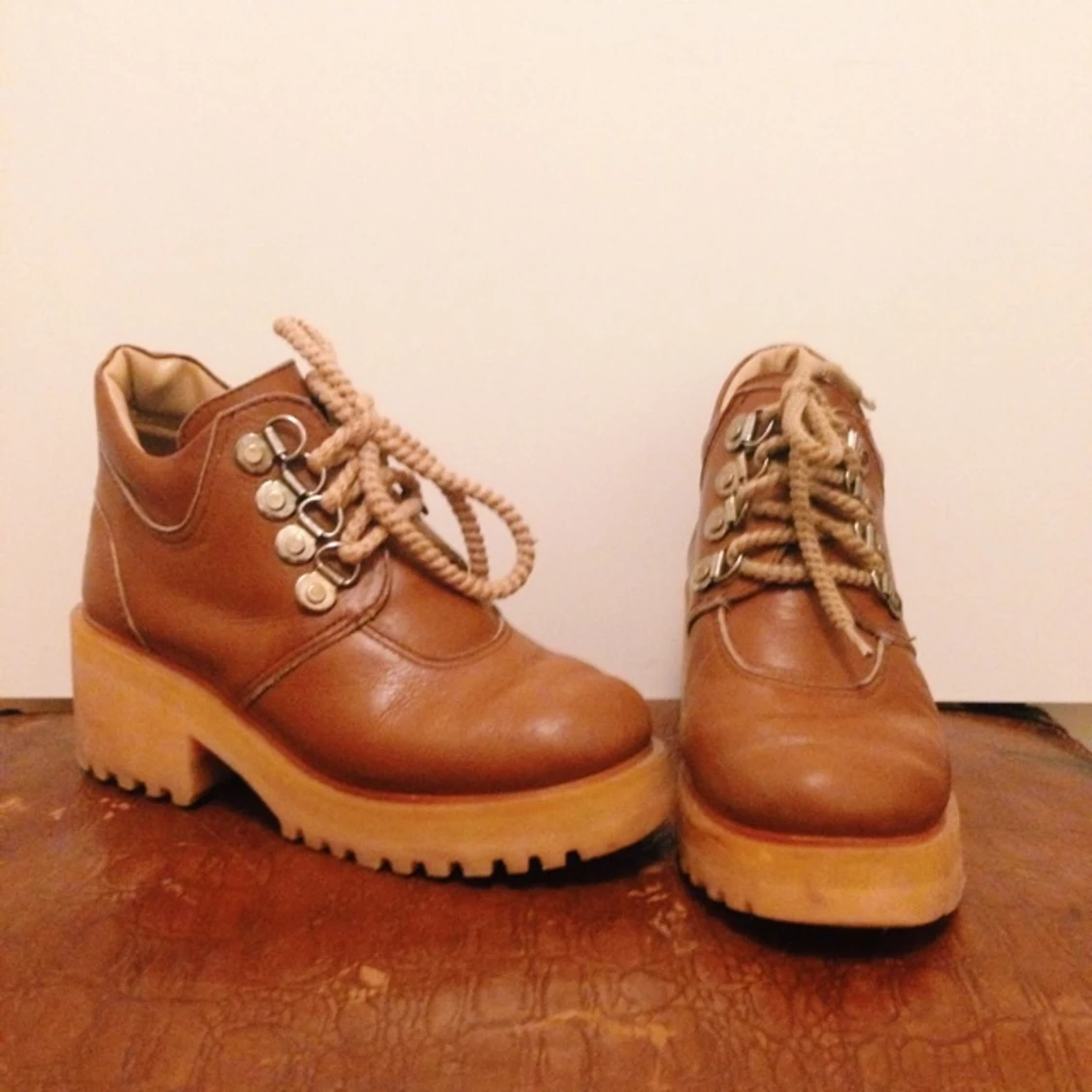 Bruna platåskor i fejkläder, storlek 36. Billiga eftersom en av hyskorna på högerskon har åkt av, vilket syns på tredje bilden. Det syns knappt när en har på sig skorna och knutigt skosnörerna. Jag möts gärna upp i Stockholms-området, city/Odenplan.
