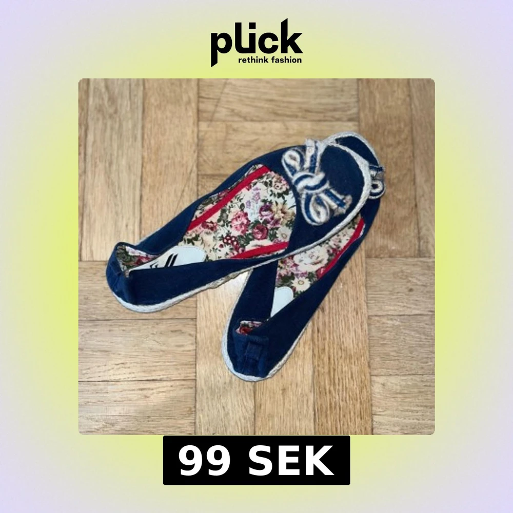 Ett par sköna mörkblå ballerinaskor från Z med dekorativ rosett framtill och blommigt innerfoder i rosa och gröna toner. Skorna har en liten defekt på vardera sida men är limmat på plats! Pris går att diskutera! 💙