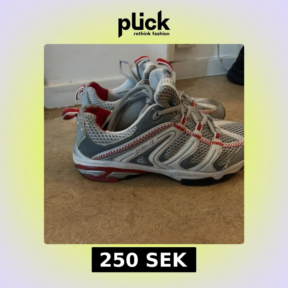 Snygga sneakers från Polecat i grått, vitt och röda detaljer. Skorna har meshpaneler för extra andningsförmåga, snörning och en sportig design. Perfekta för dig som gillar en aktiv livsstil och vill ha bekväma skor med cool look.