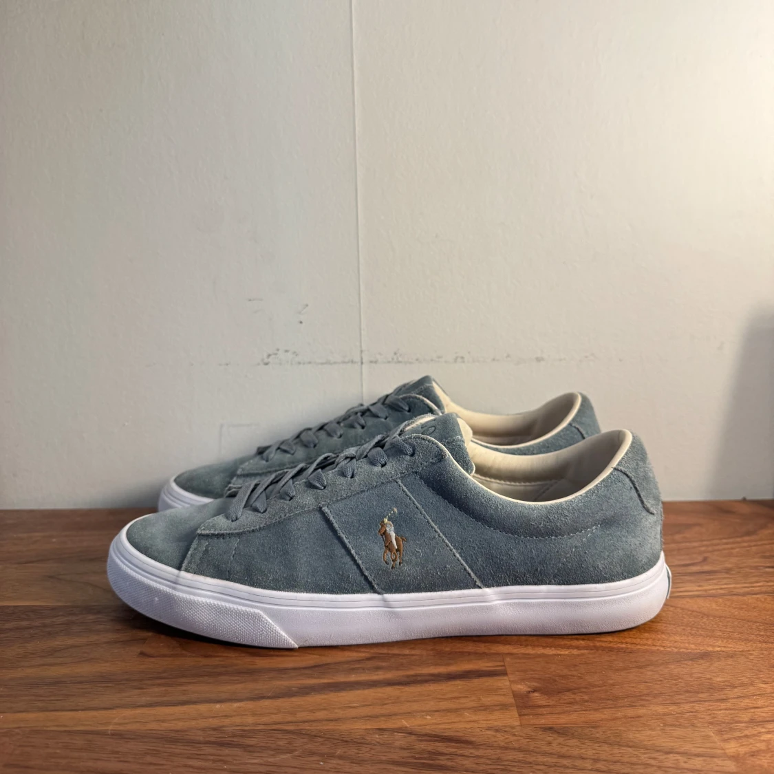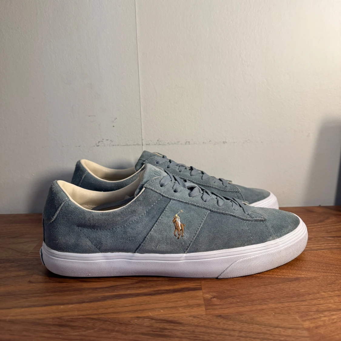 Säljer ett par snygga och stilrena blåa mocka skor ifrån Polo Ralph Lauren i väldigt fint skick. Skorna passar perfekt nu till sommaren och varmare väder.