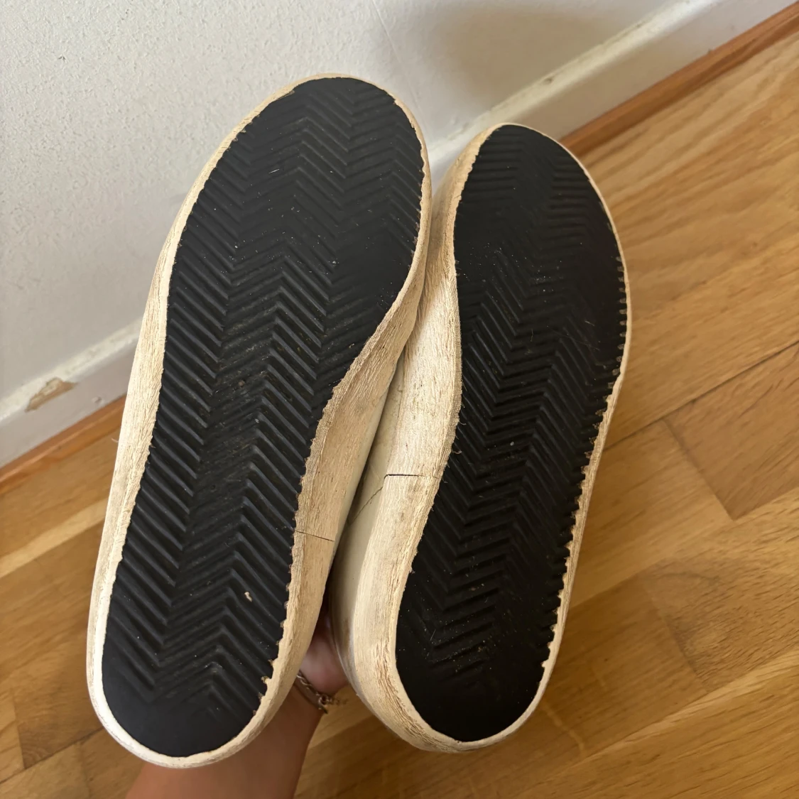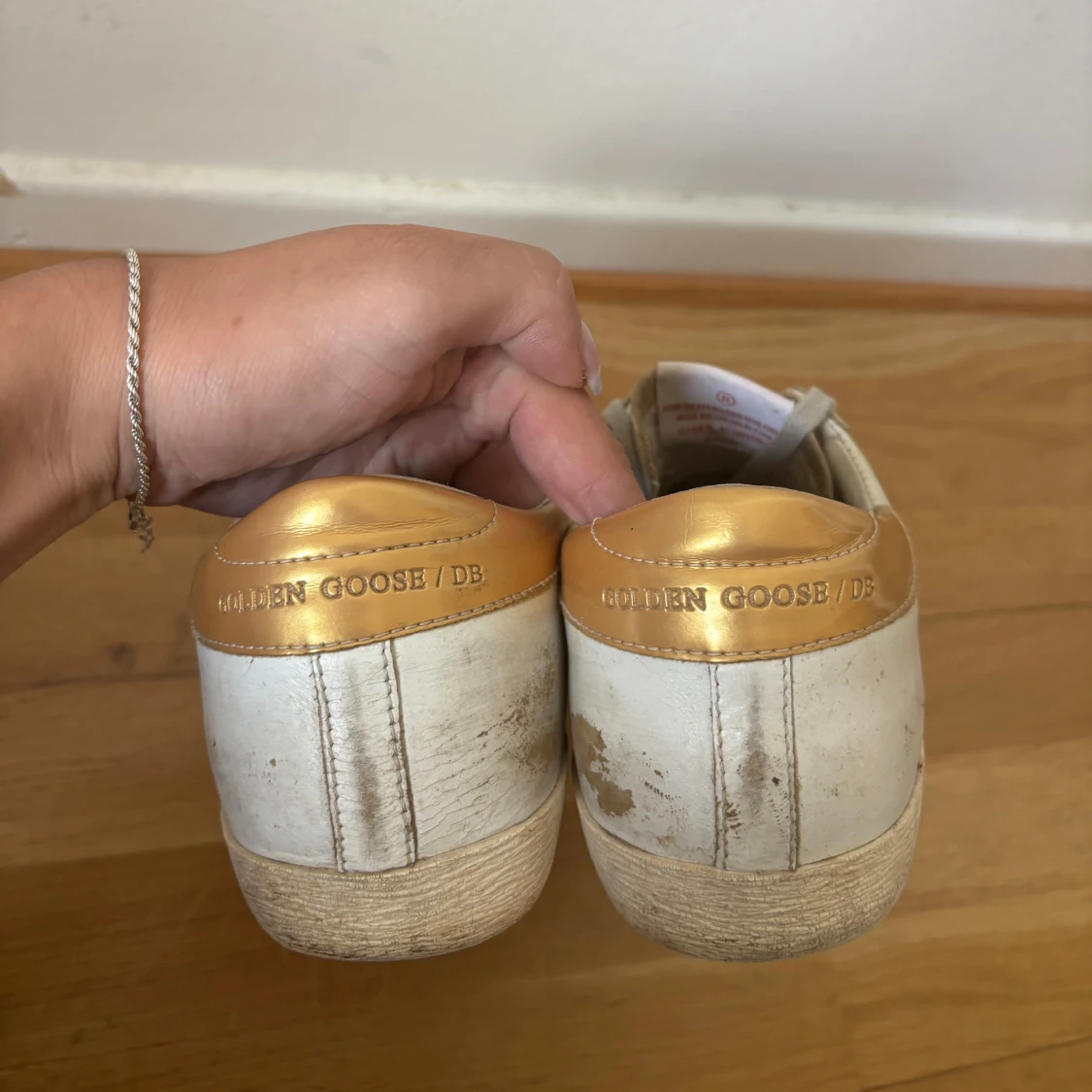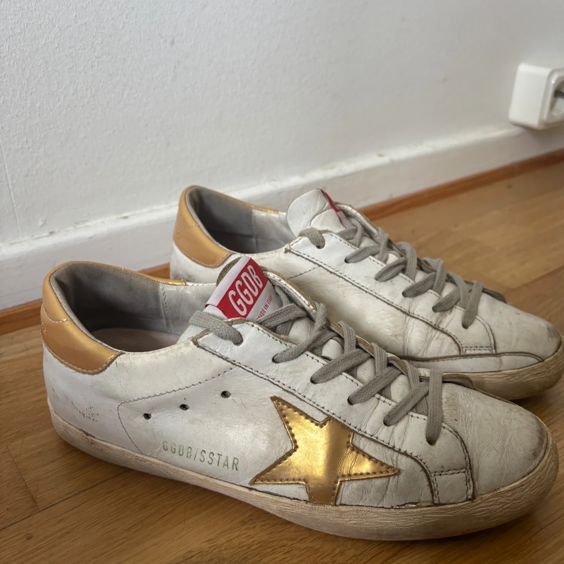 Golden Goose superstars i vitt och guld. Skorna är i gott skick och är i storlek 37 (endast skor medföljer i köpet)