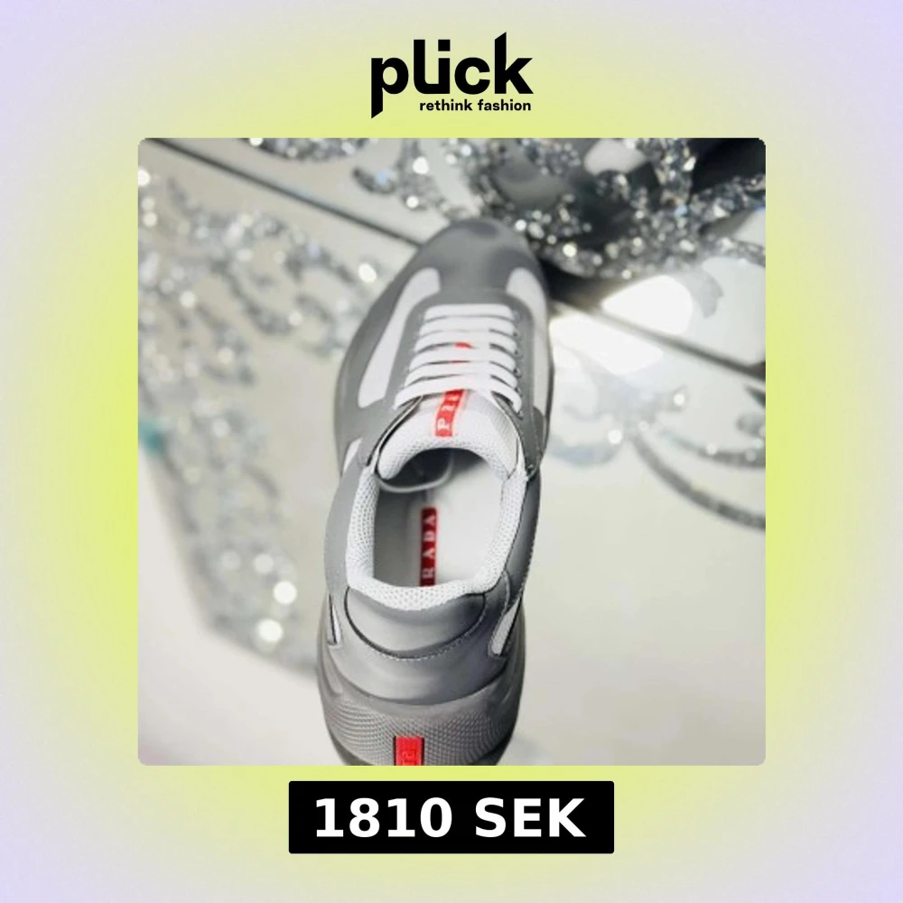 Snygga sneakers från Prada i grått och vitt med röda detaljer. Skorna har en modern design med meshpaneler, vita snören och en bekväm platt sula. Perfekta för dig som vill ha en clean och stilren look med exklusiv känsla.