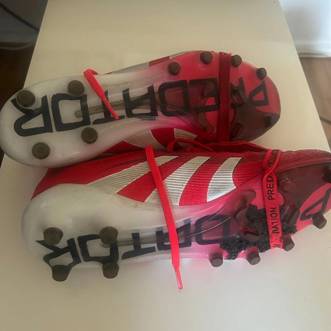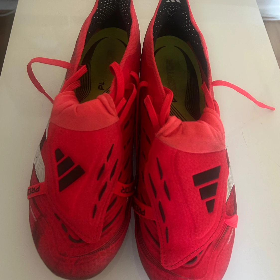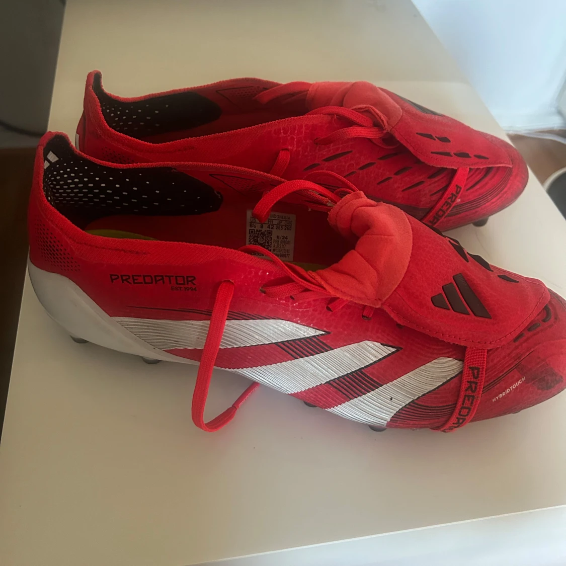 Säljs till perpsner med storlek 42, som har bredare fot, jag personligen har smal fot där av svåra att passa på mig, passar dig som har breda tår och bred fot som helhet. Använda några träningar