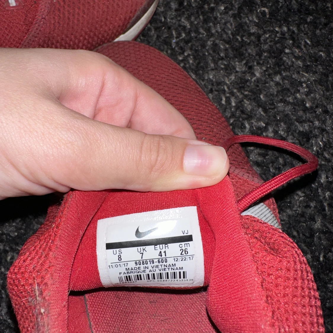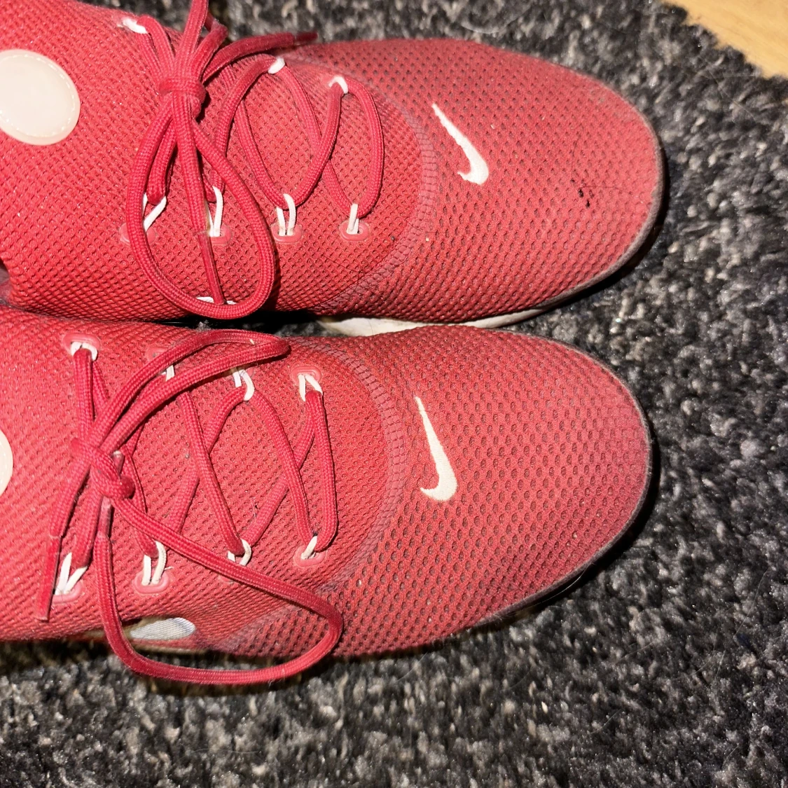 Ett par röda Presto fly skor som jag köpte för 3 år sen. Det används inte och säljs därför. Det finns en börja på hål som syns i bild 2 och de är i storlek 41. Köp gärna genom köp nu💕