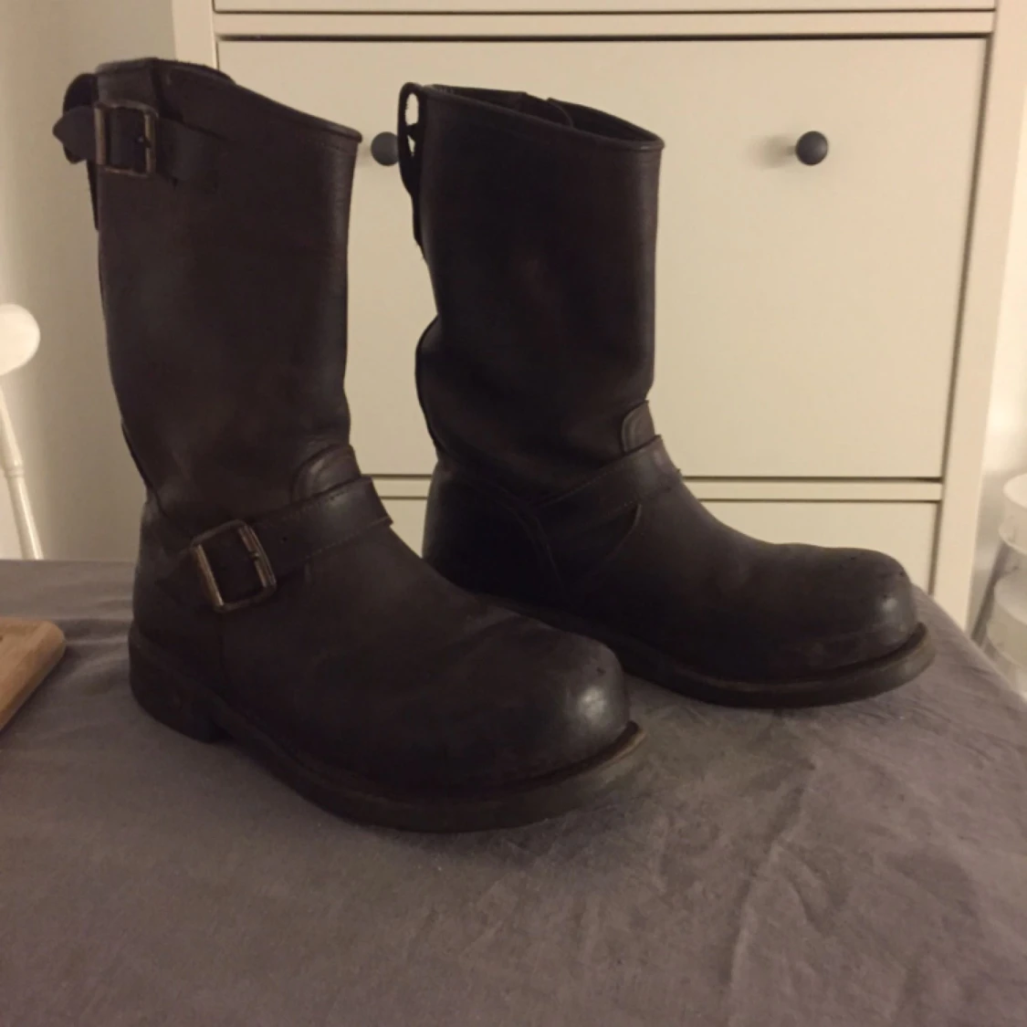 Mörkbruna mellanhöga Primeboots. Använda mycket men fortfarande coola trots en tid på nacken. Går definitivt att putsa upp ordentligt för mer glans om man inte vill ha den lite grövre ytan som nu finns naturligt. Priset kan justeras vid snabb affär.