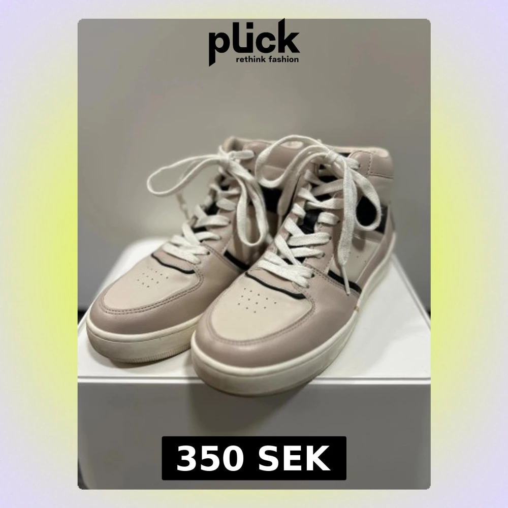 Snygga high-top sneakers i beige och vitt med svarta detaljer. Skorna har rund tå, platt sula och klassisk snörning. Använd några få antal gånger! 💖👟