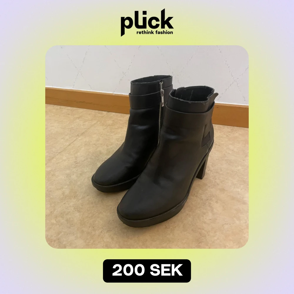 Snygga svarta boots i skinn med dragkedja på sidan. De har en stabil klack och en rund tå, perfekt för både vardag och fest. Skorna är i bra skick. Enkla att matcha med olika outfits! Märket är Pull&Bear