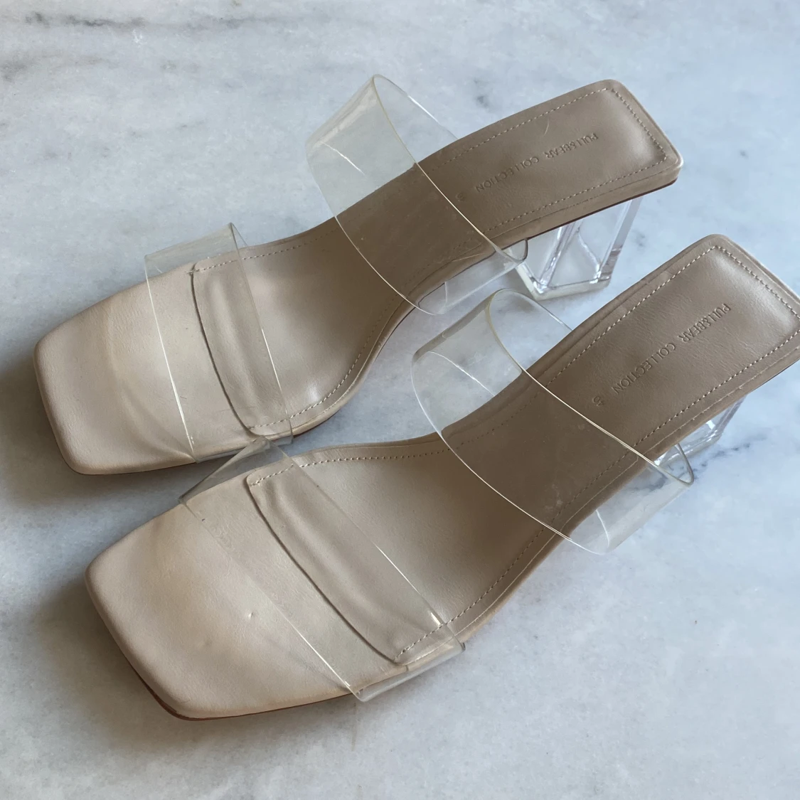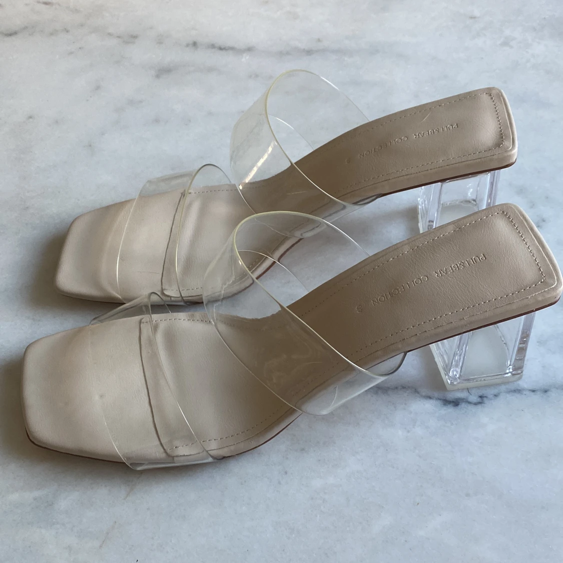 Transparenta klackar från Pull & Bear. Aldrig använda, endast lite smått sotiga under efter att ha gått omkring i dom hemma när de testades. Som nya 🦋💙
