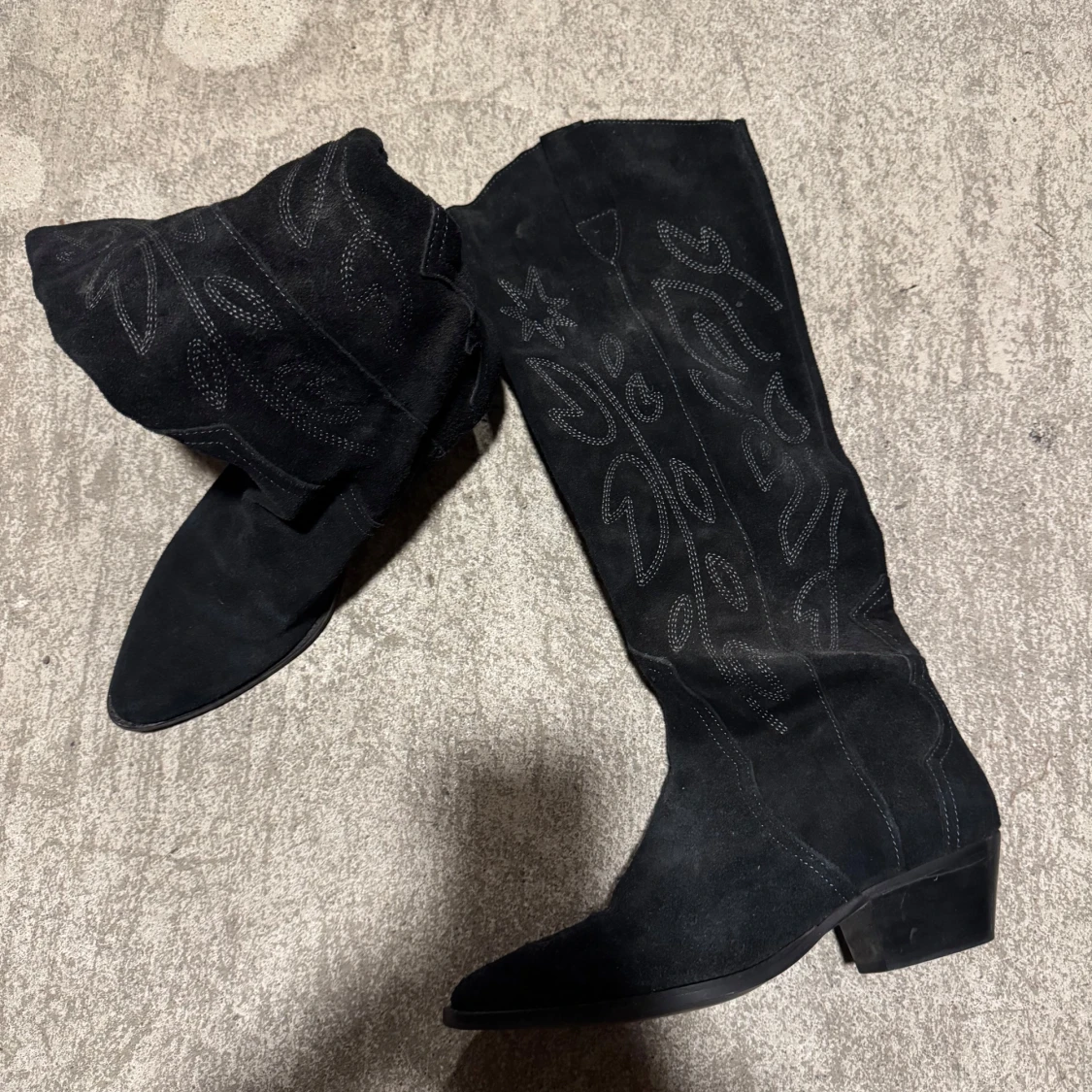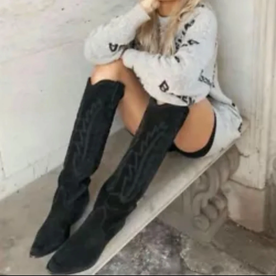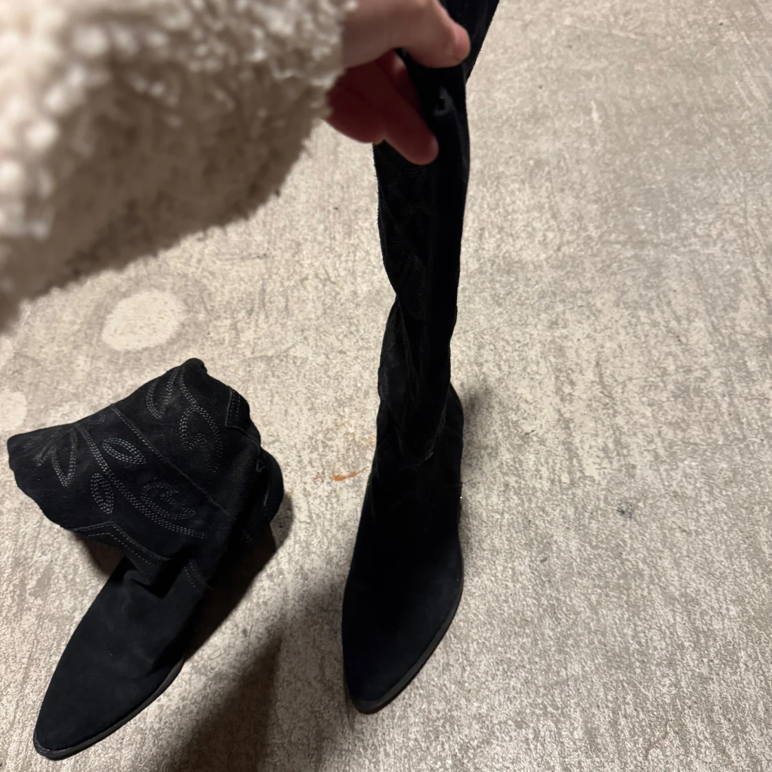 Cowboyboots i svart äkta mocka i storlek 37 från Pull & Bear. Köpta 2024 och använd ett fåtal gånger 🖤