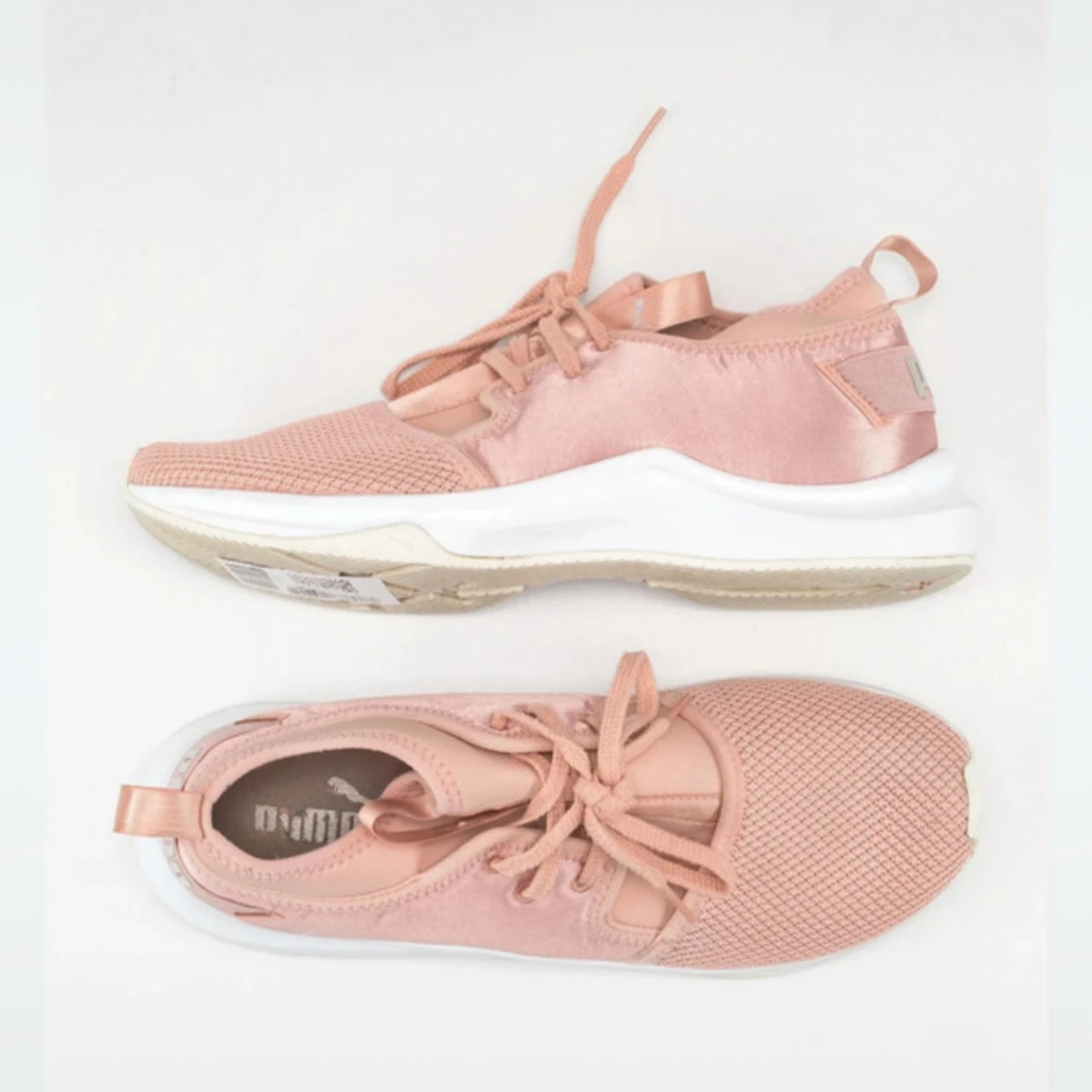Snygga sneakers från Puma i en ljusrosa ton med vit sula. Ovandelen är i mesh och syntet, vilket ger en sportig vibe. Skorna har snörning och Puma-logga baktill. Perfekta för dig som gillar stilrena och bekväma sneakers med modern känsla.