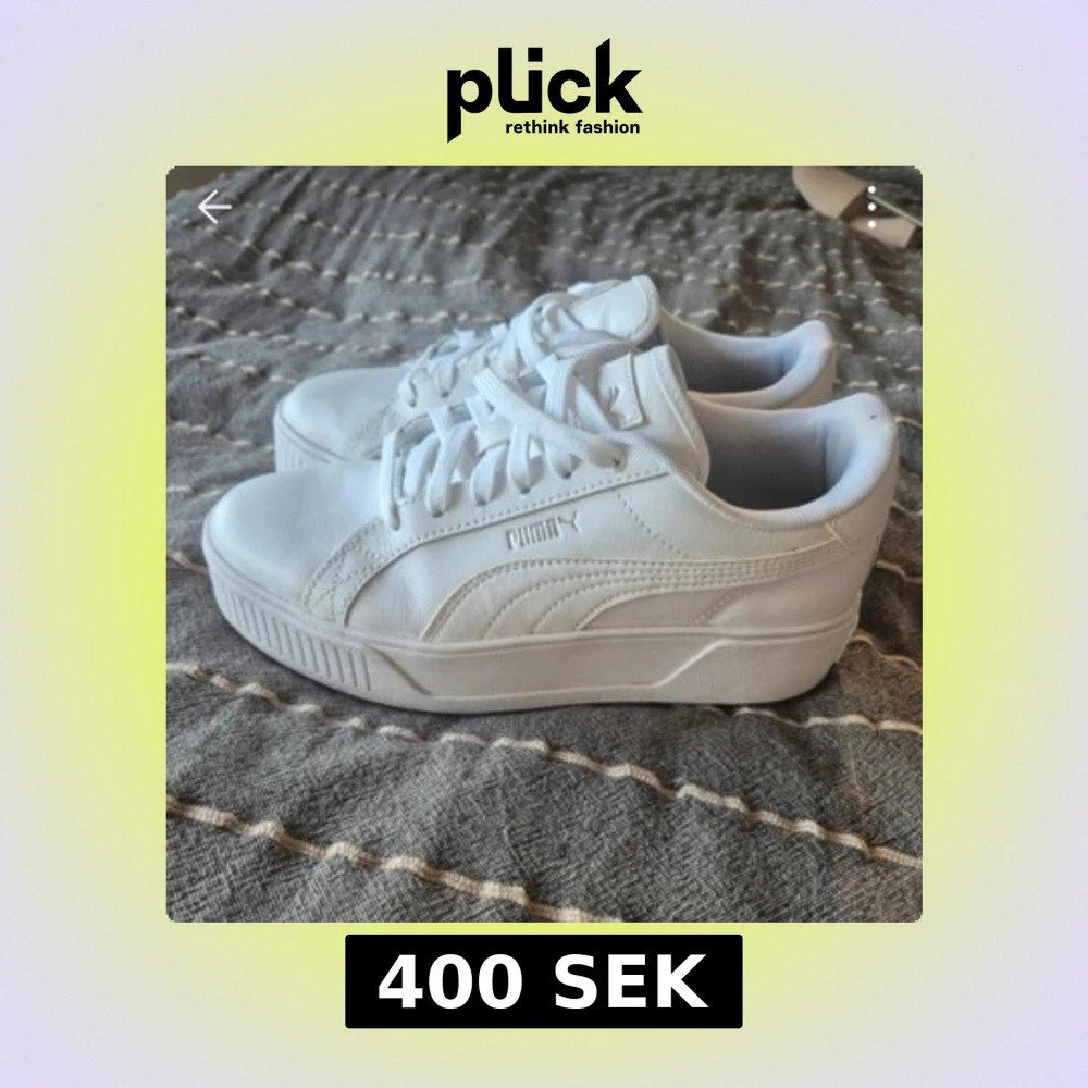 Snygga helvita sneakers från Puma med klassisk logga på sidan och hälen. Skorna har en chunky platåsula och är gjorda i skinn med snörning framtill. Perfekta för dig som gillar en clean och sportig look.