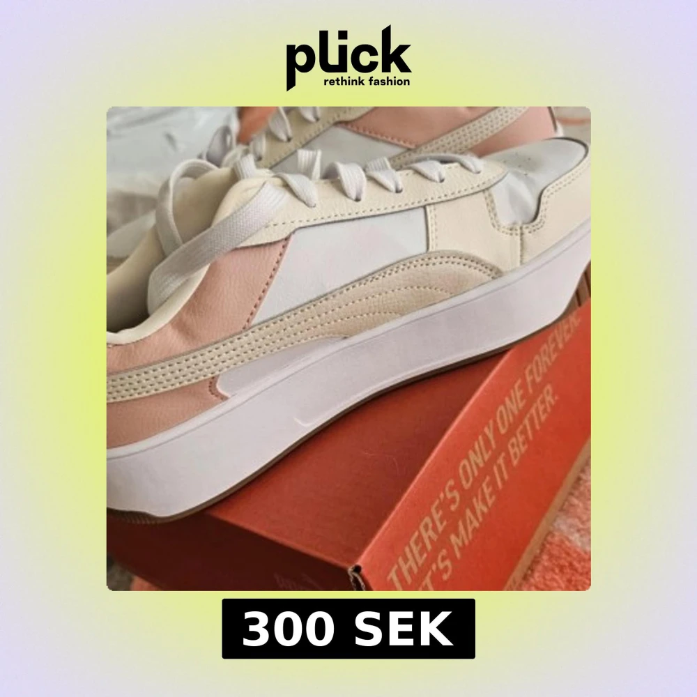 Snygga Puma sneakers i vitt och beige med rosa detaljer. Skorna har en klassisk design med snörning och en bekväm sula. Perfekta för en stilren look.