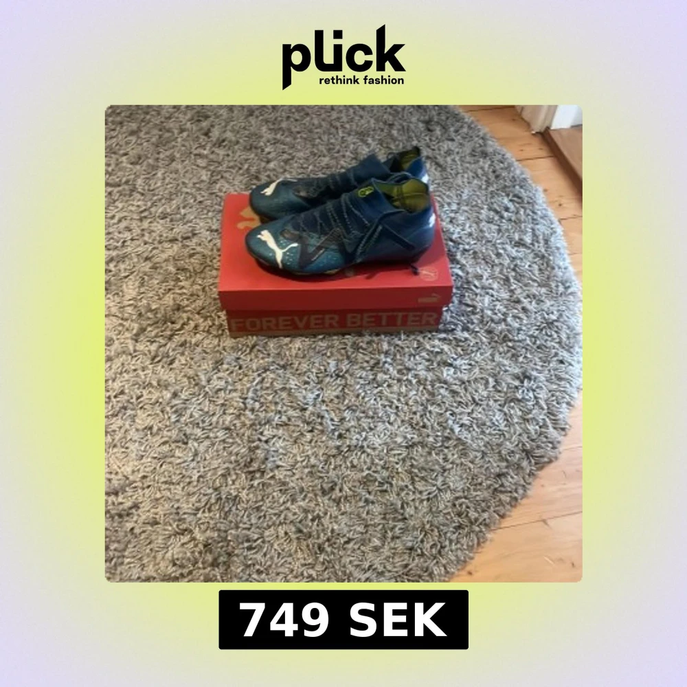 Snygga blå fotbollsskor från Puma med vit logga och snörning. Skorna har en modern design med detaljer i svart och grönt. Perfekta för fotbollsplanen med en tight passform som ger bra kontroll. Nypris 2599 box ingår