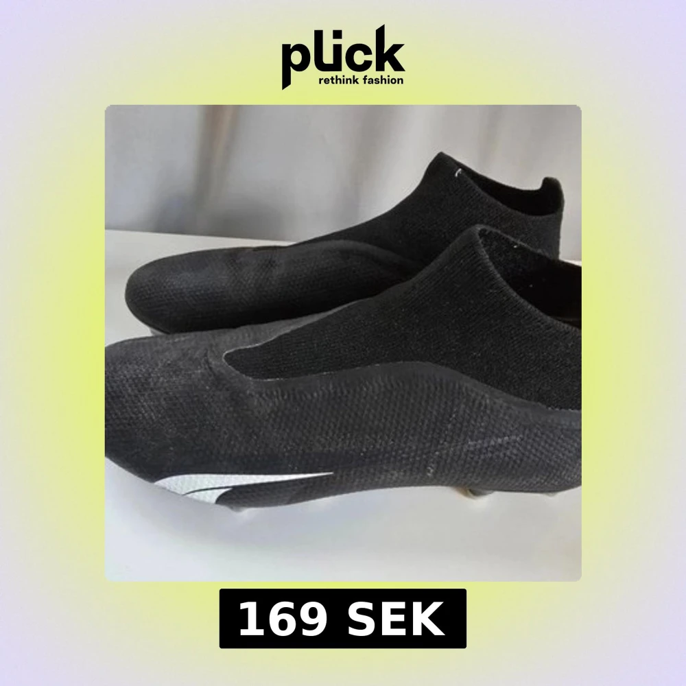 Säljer ett par svarta Puma Ultra fotbollsskor med vit logga på sidan. Skorna har strumpliknande skaft och ovandel i syntetmaterial för en tight passform. Sulan har fasta dobbar för gräsplan. Riktigt clean och modern look för dig som vill sticka ut på planen.