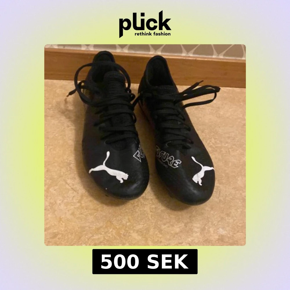 Säljer ett par svarta Puma Future fotbollsskor med vita detaljer och logga. Skorna har snörning och är designade för att ge bra grepp på planen. Tyvärr så kommer skorna utan låda fast dom är i jätte bra skick. Dom är heller inte använda. Perfekta för dig som vill ha stilrena och funktionella fotbollsskor. Pris går att diskutera ifall man inte är nöjd med det nuvarande priset