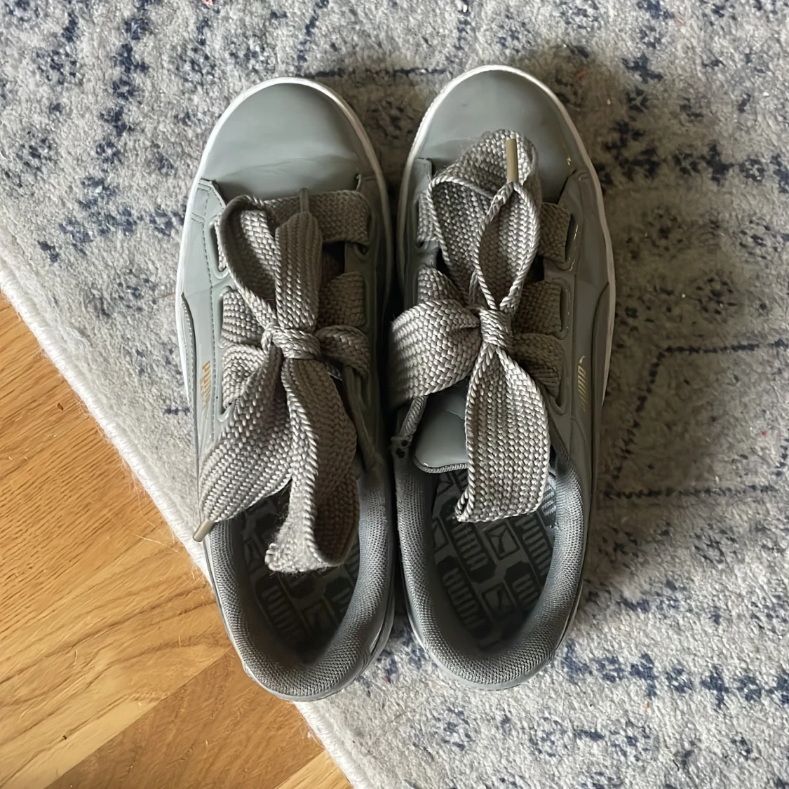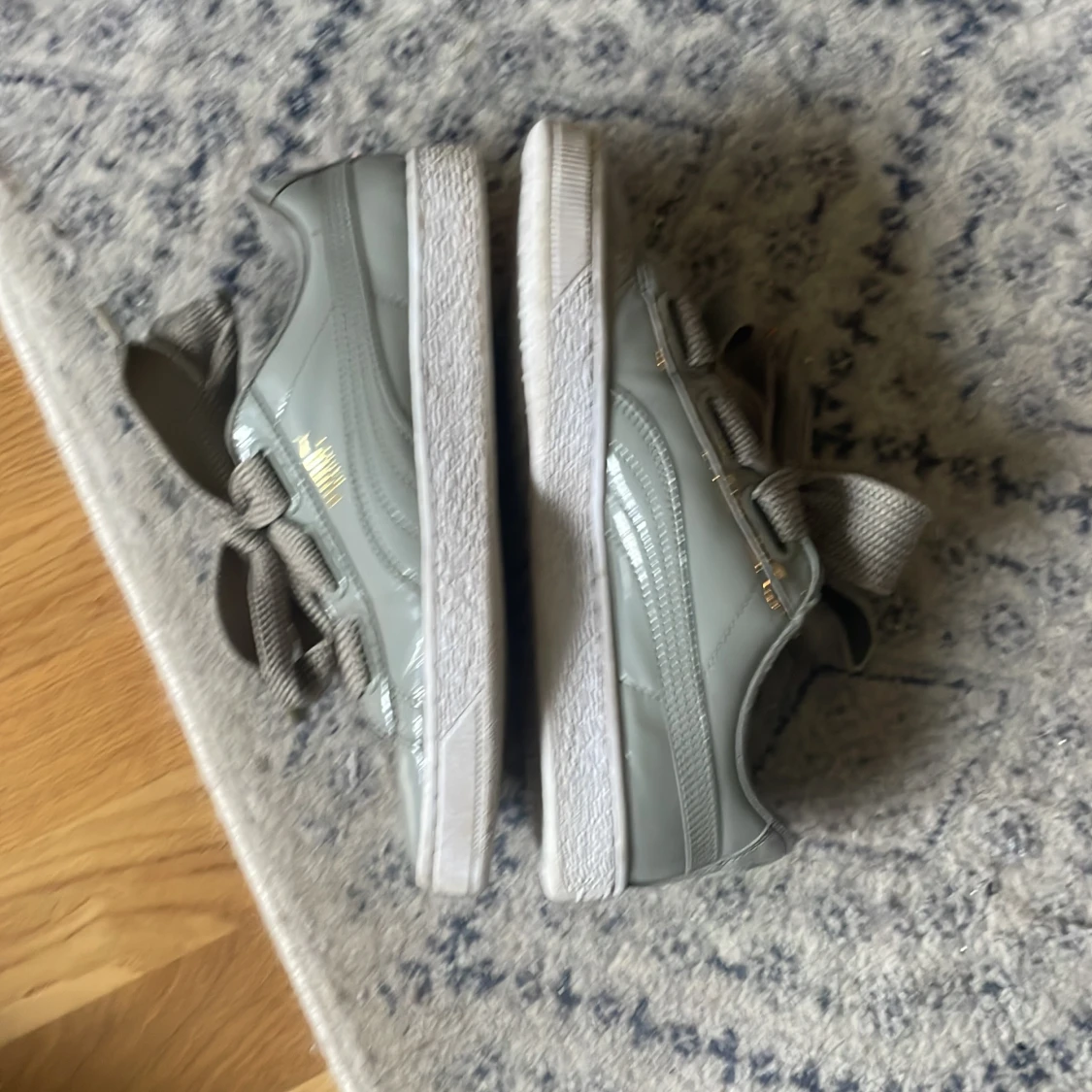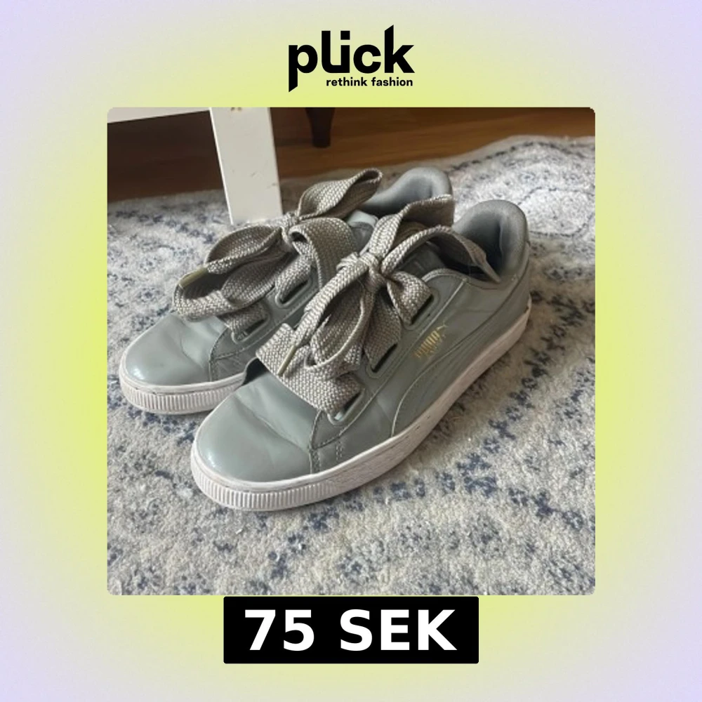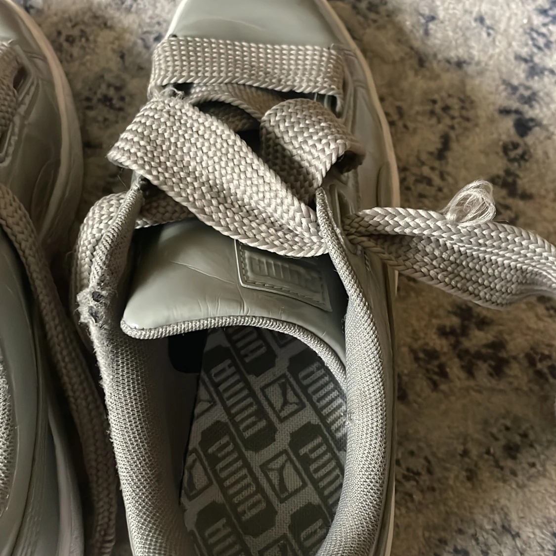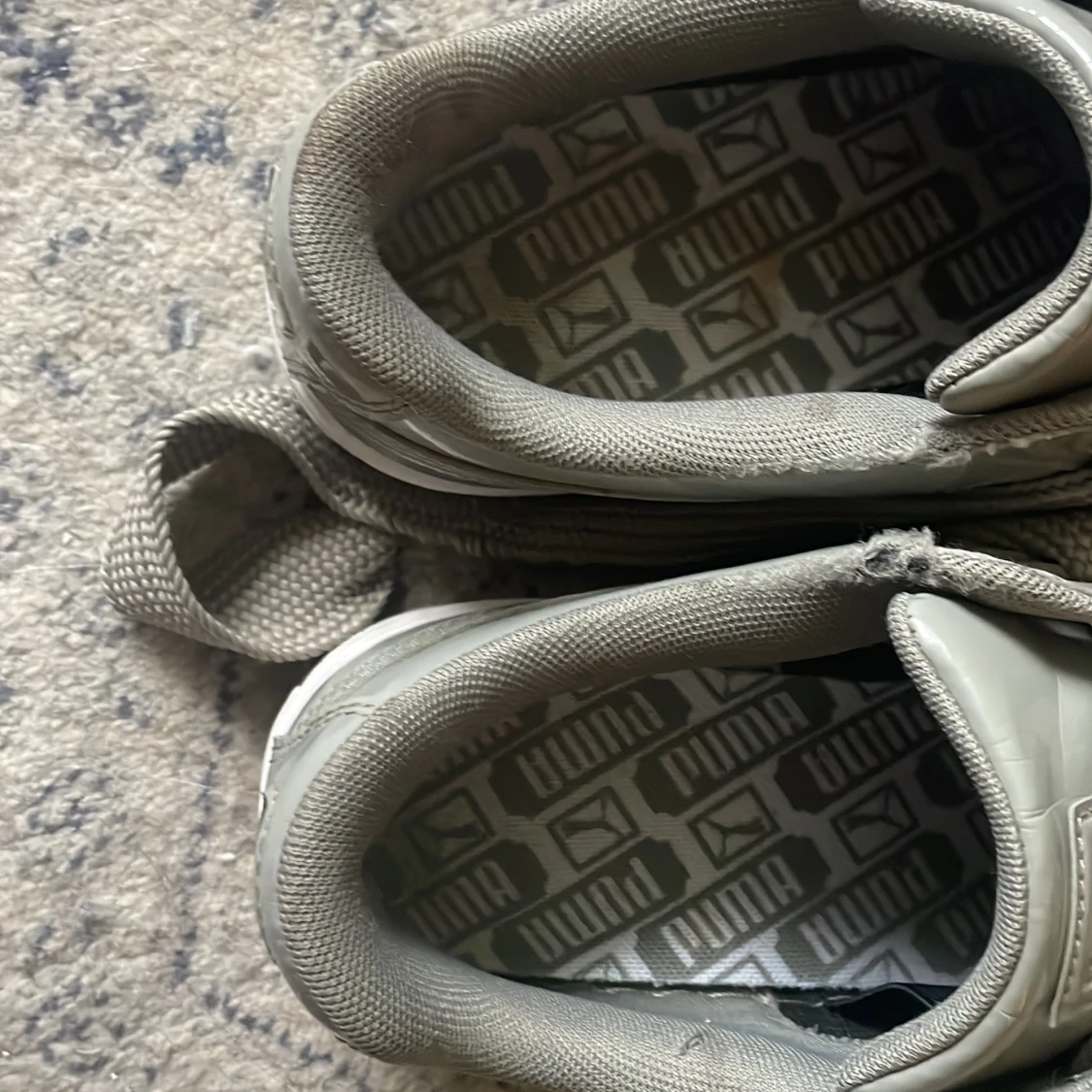 Fina puma skor som jag köpt på Sellpy. Säljer dem då storleken var för stor för mig. Utöver väldigt fina och bekväma. Lite trasig på höger foten. Lite småfläckar bak dit hälen sträcker sig i foten (se sista bilden).