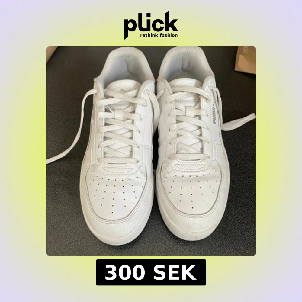 Fräscha helvita sneakers från Puma i skinn med klassisk låg profil och rund tå. Skorna har perforerade detaljer på tån, snörning och diskret Puma-logga på sidan och hälen. Perfekta för en clean och stilren look.