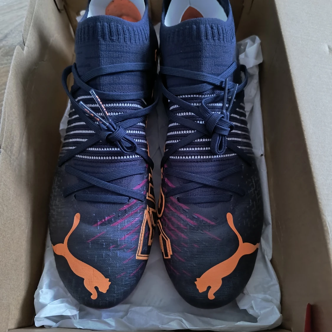 Säljer ett par Puma Future Z 1.2 FG/AG fotbollsskor i storlek 43. I absolut nyskick! Endast testad 5 min på konstgräs och sedan packeds igen i box. Passade inte. Nypris över 2500kr