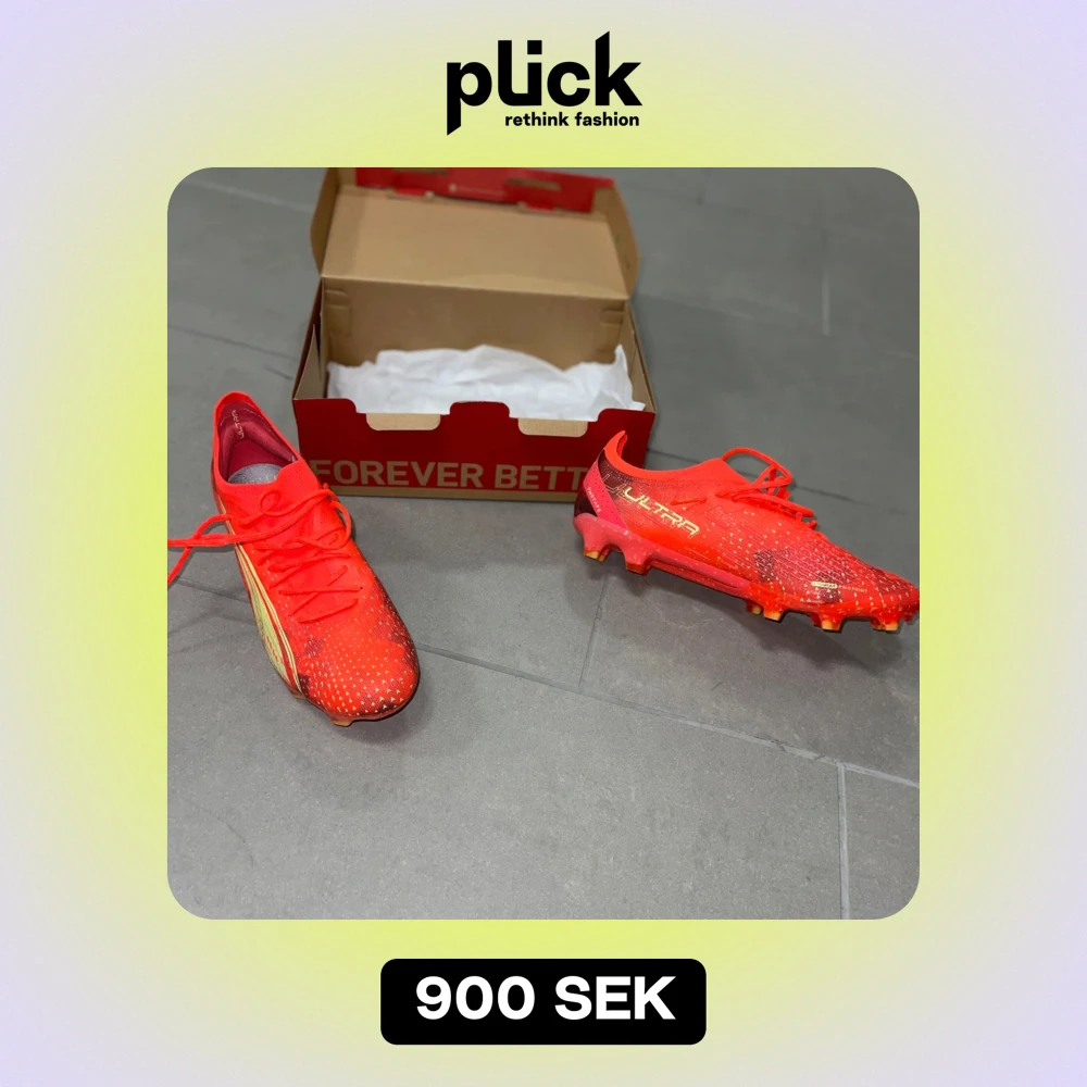 Säljer ett par grymma röda fotbollsskor från Puma i nytt skick. Skorna har en cool design med svarta och gula detaljer och är perfekta för fotbollsträning eller match. De har snörning för bästa passform och är superlätta för snabbhet på planen. Skick: Nyskick. Storlek: 43. Pris: 900kr