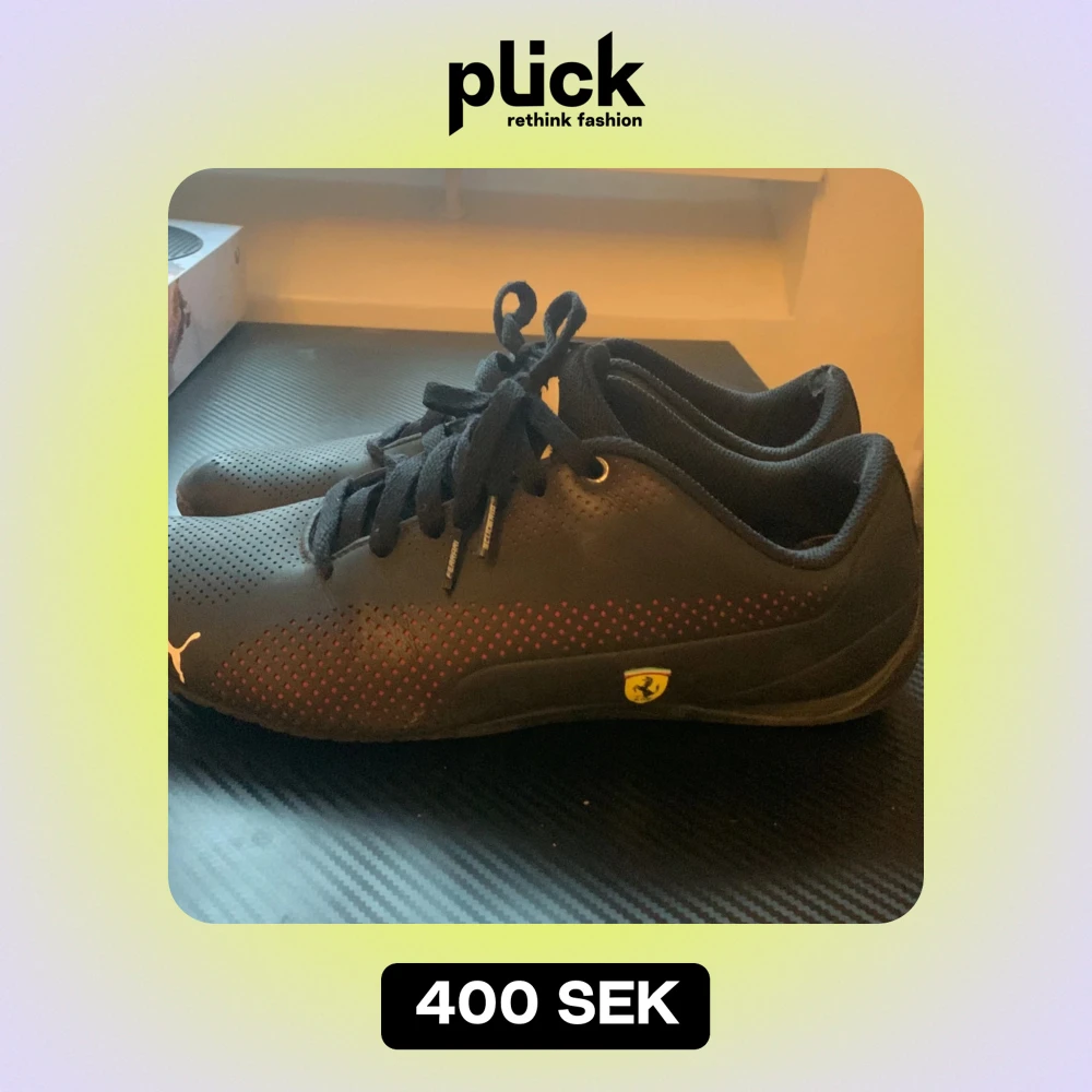 Snygga svarta sneakers från Puma med en cool Ferrari-logga på sidan. Skorna har snörning och små röda detaljer som ger en sportig look. Perfekta för dig som gillar både stil och komfort. De är i mycket bra skick och redo för nya äventyr!