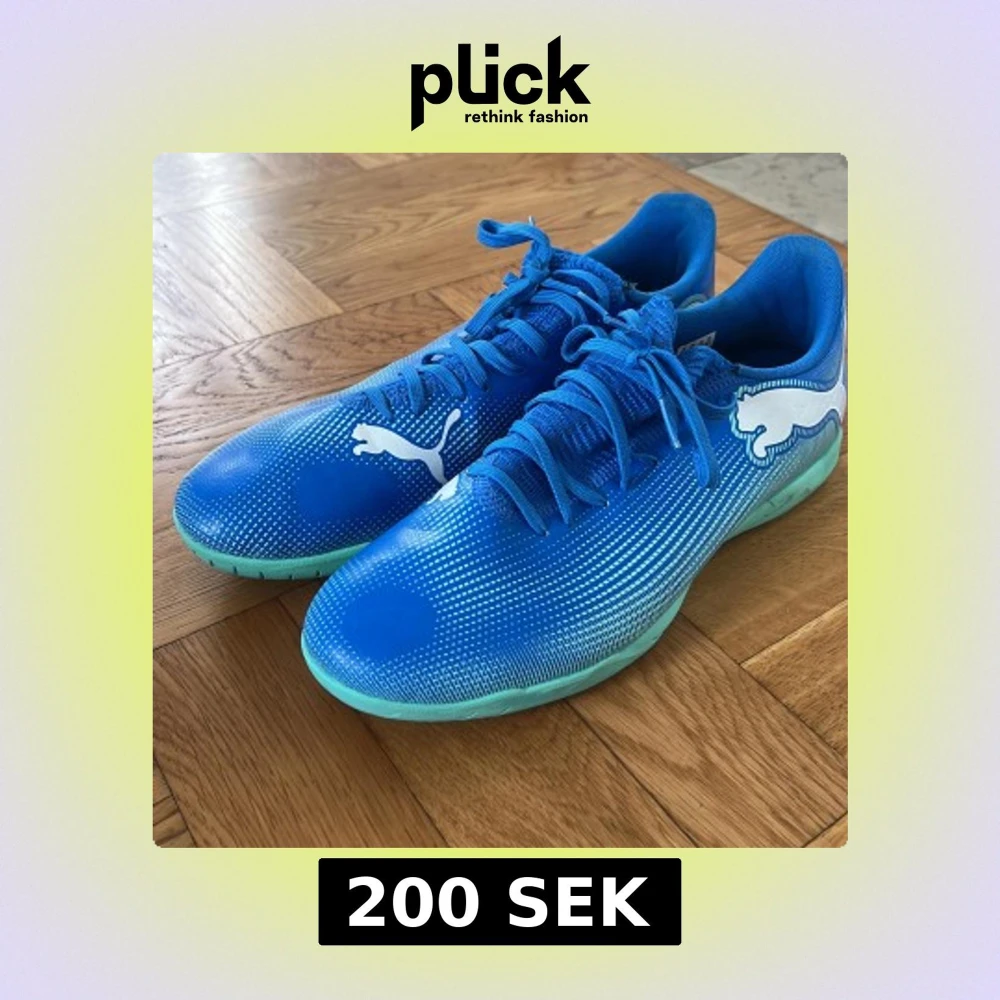 Säljer ett par blåa Puma fotbollsskor med vit logga. Endast använda en gång.