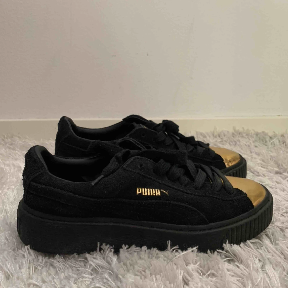 Puma x Rihanna sneakers i svart mocka med gulddetaljer. Köpta för 1299