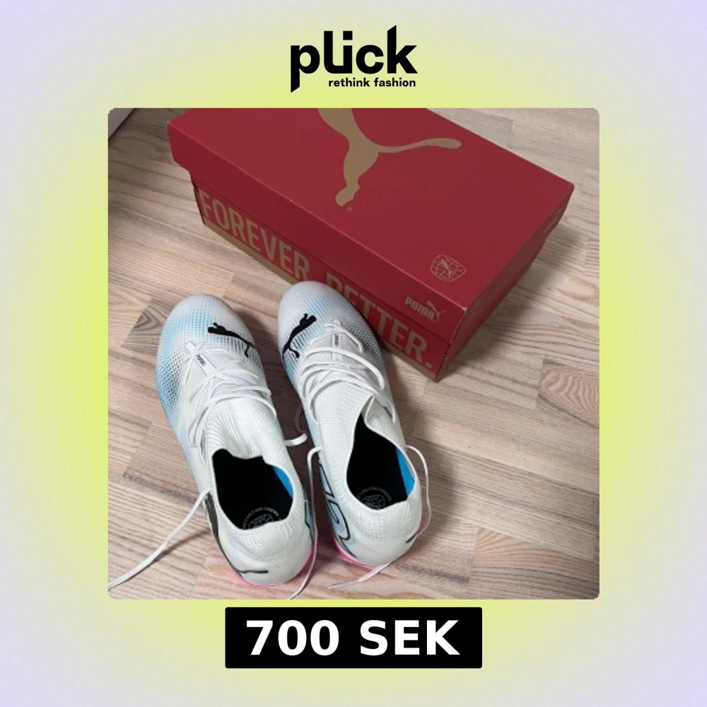 Säljer ett par grymma Puma Future 7 Match FG/AG fotbollsskor i vitt med svarta detaljer och coola blå och rosa inslag. Skorna har snörning och en syntetisk ovandel för bästa passform. Sulan är rosa med dobbar för spel på både natur- och konstgräs. Ny pris 1100kr