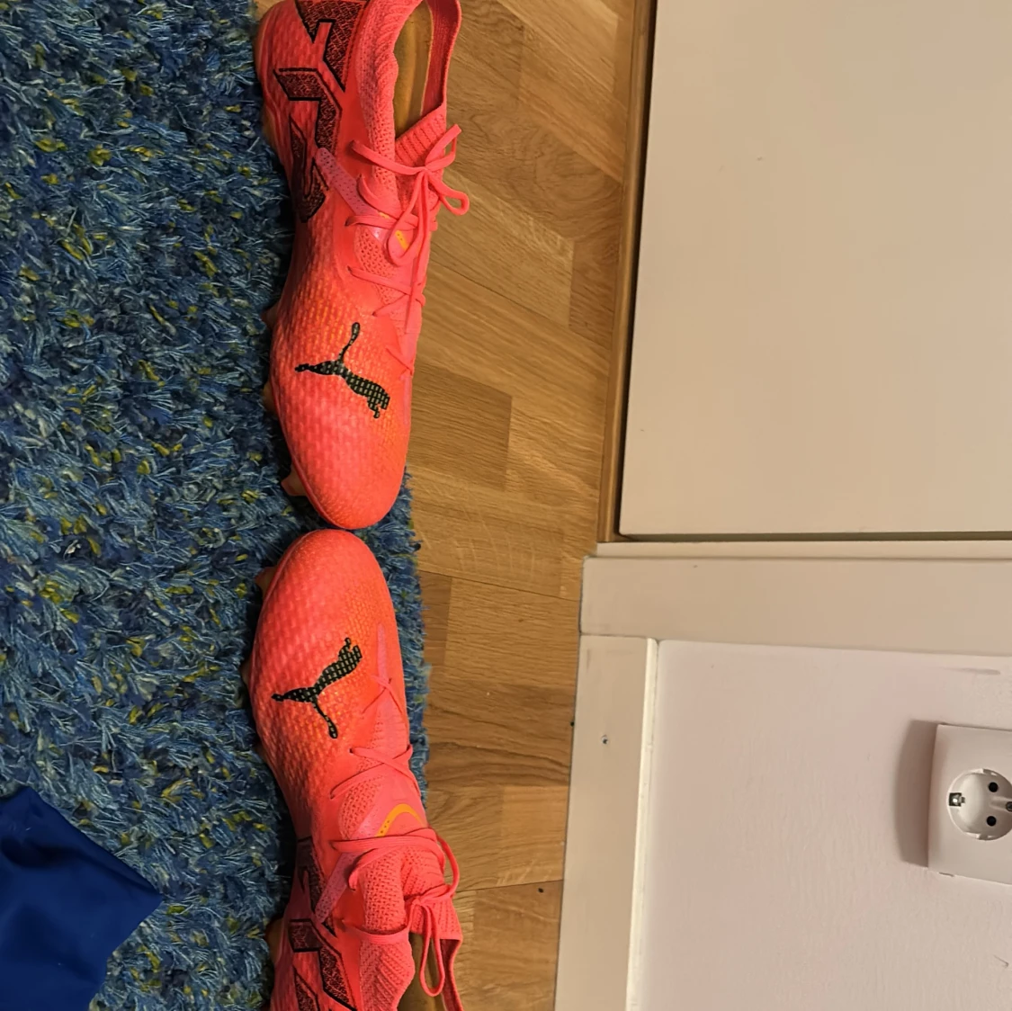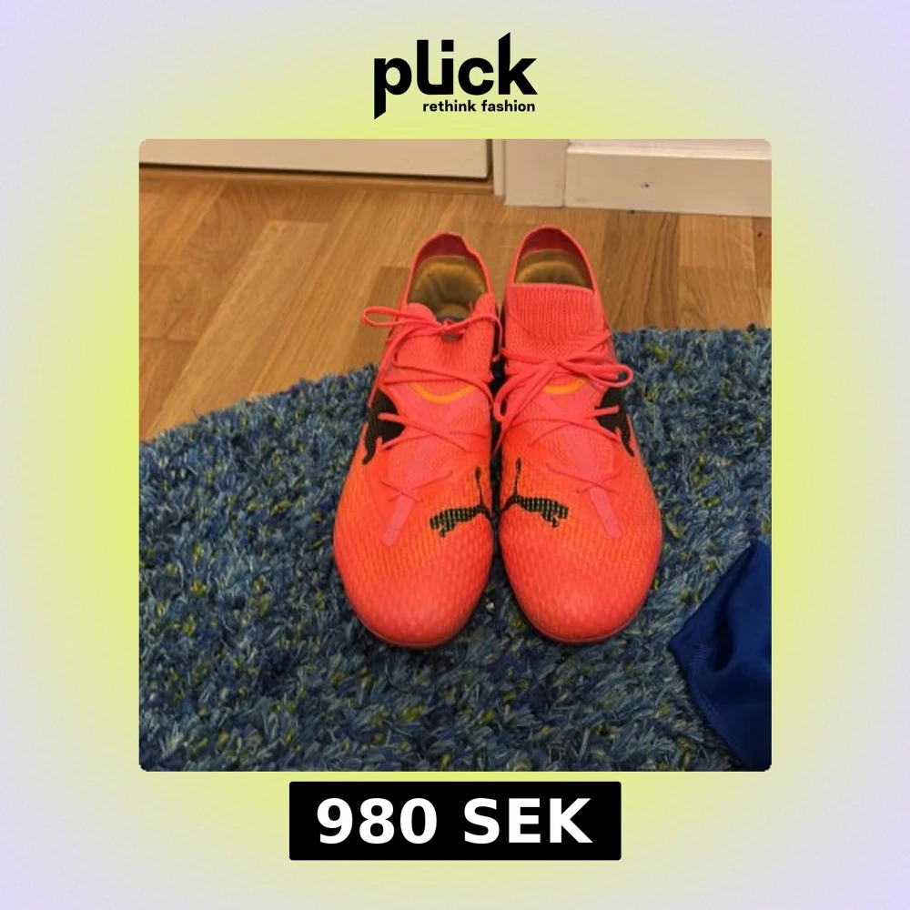 Snygga rosa fotbollsskor från Puma med svart logga på sidan. Skorna har snörning och en modern design som passar perfekt för fotbollsplanen. Använda 5 träningar och ser ut att aldrig vara använda. Jag köpte de för 1300 tror jag på unisport. Säljer pga har köpt nya för att de var för små