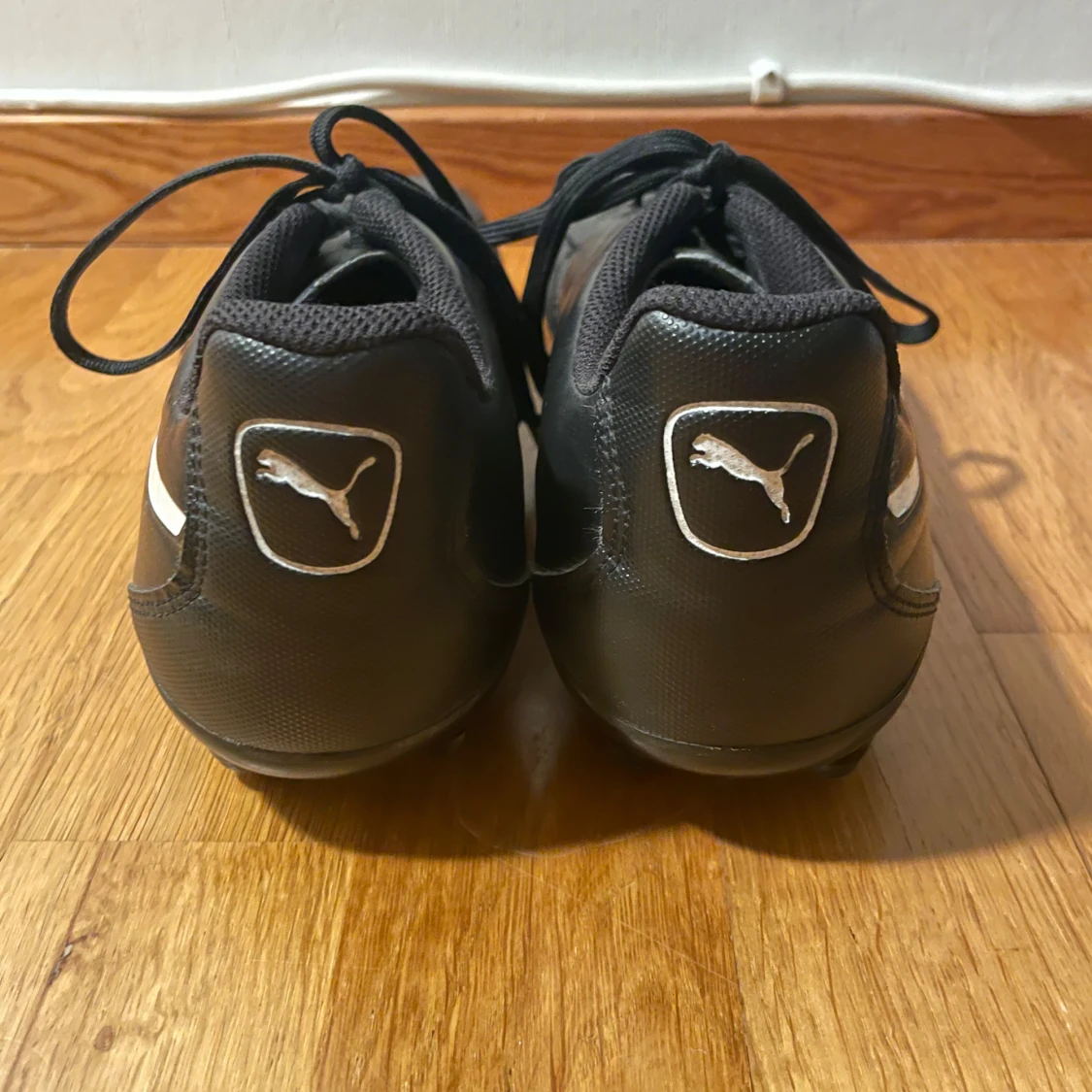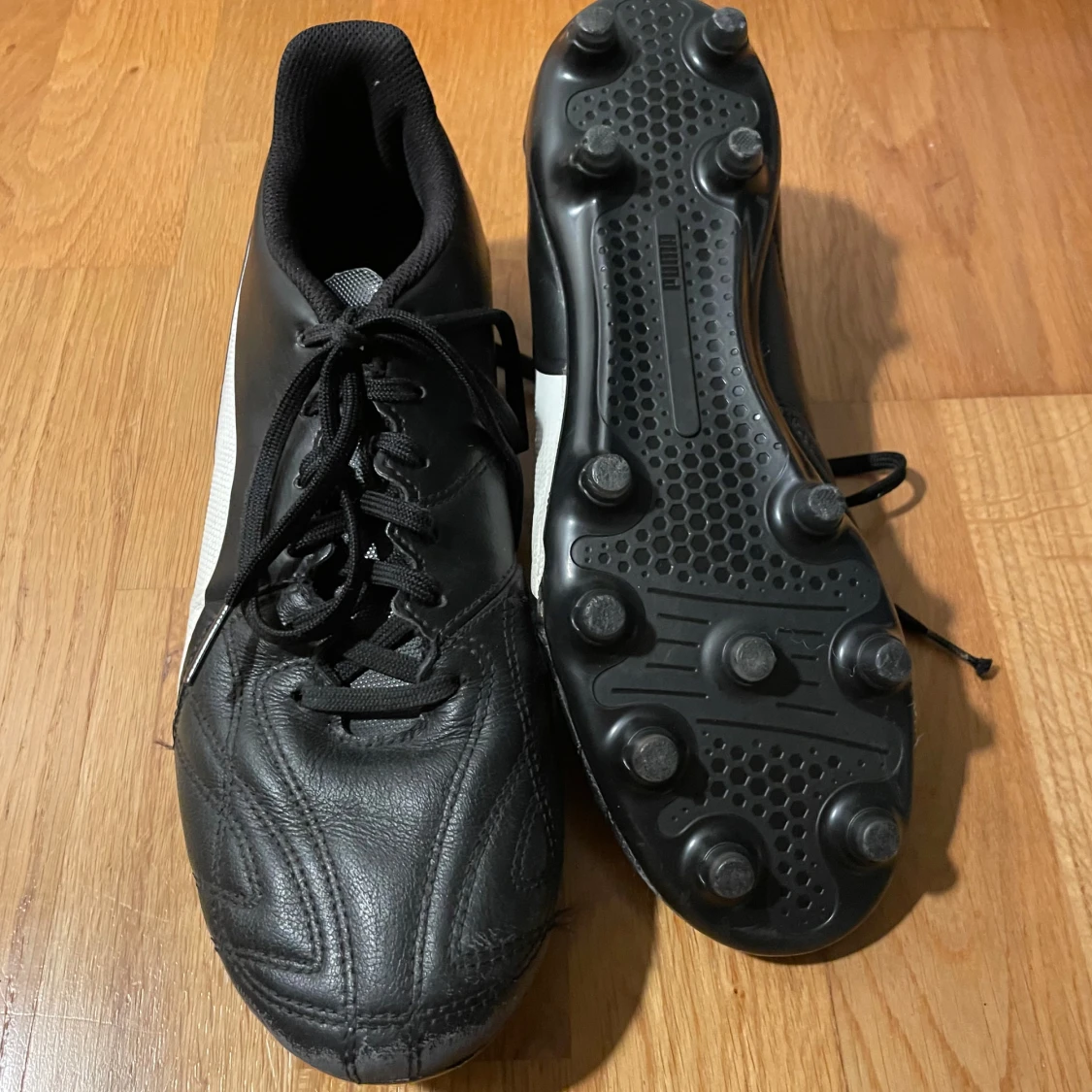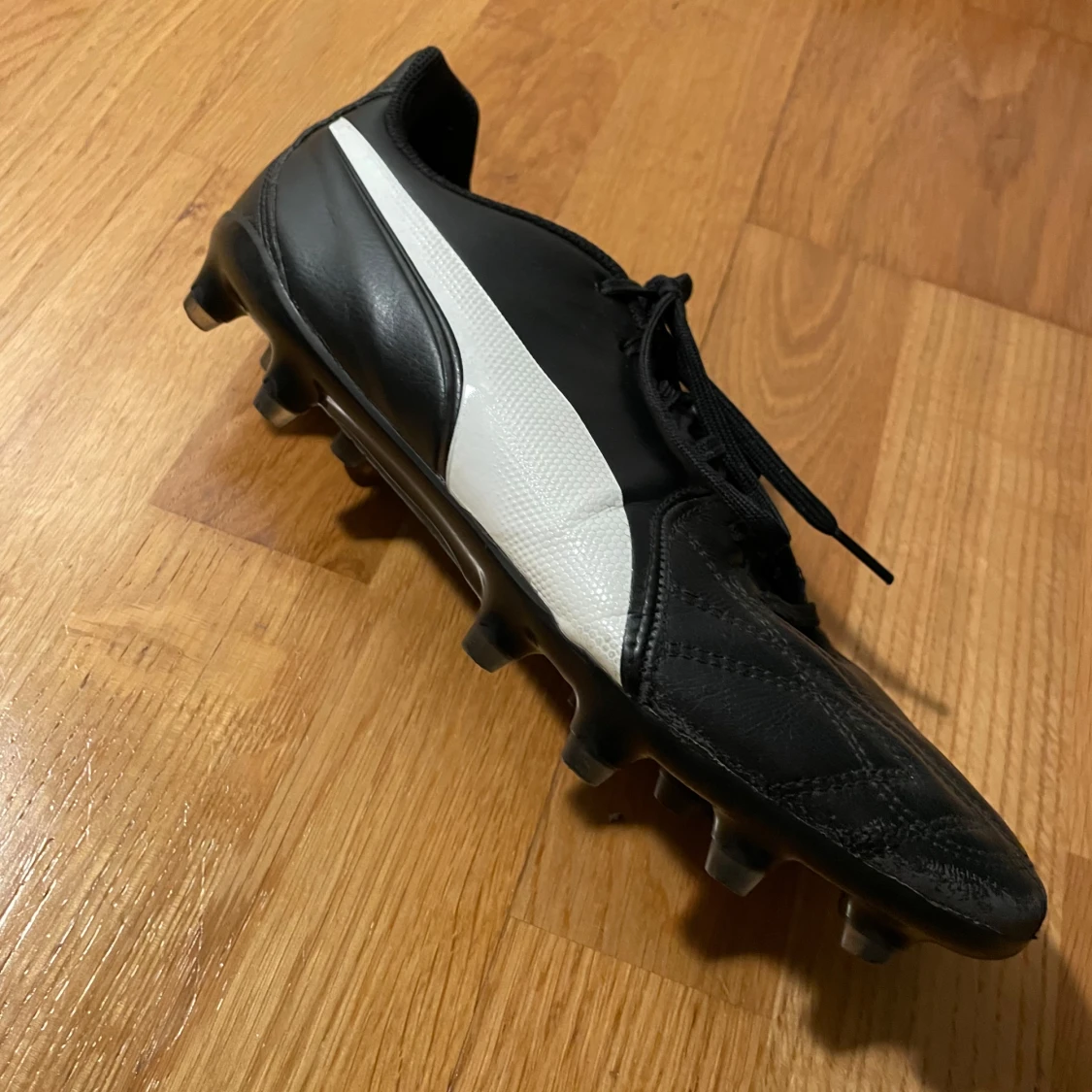 Snygga svarta fotbollsskor från Puma med vit detalj på sidan. Skorna har snörning och dobbar för bra grepp på planen. Perfekta för fotbollsspelare som vill ha stil och funktion.