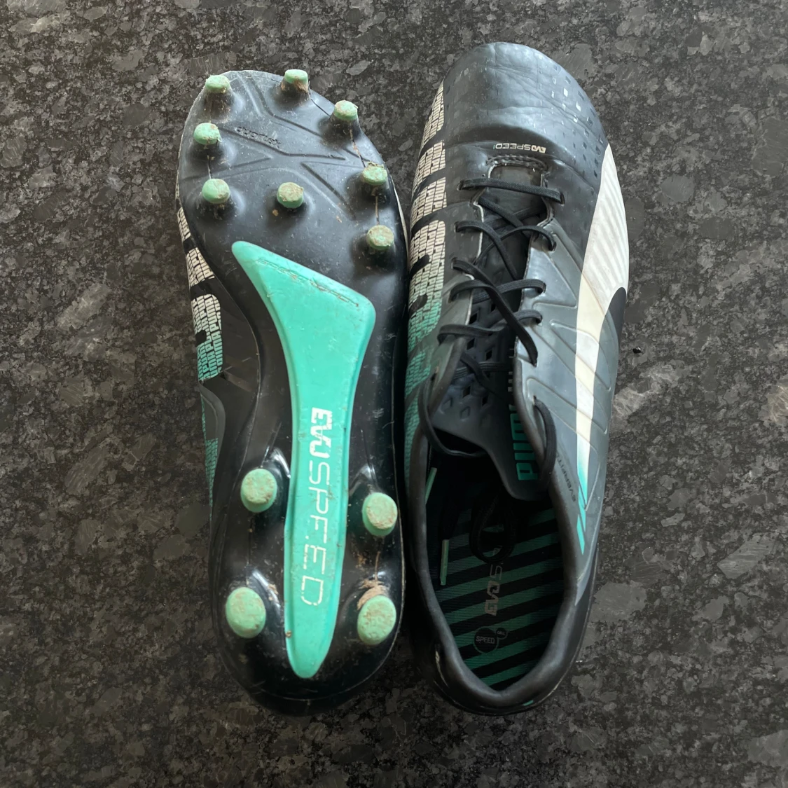 En personlig favorit från Puma evo speed. Använt skick, men inga som helst defekter! Undersidan rengörs vid köp🤝 Storlek: 43
