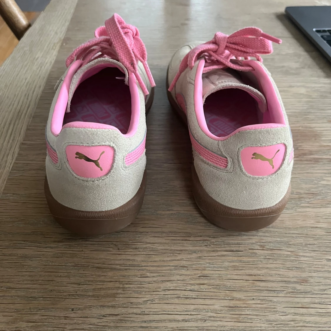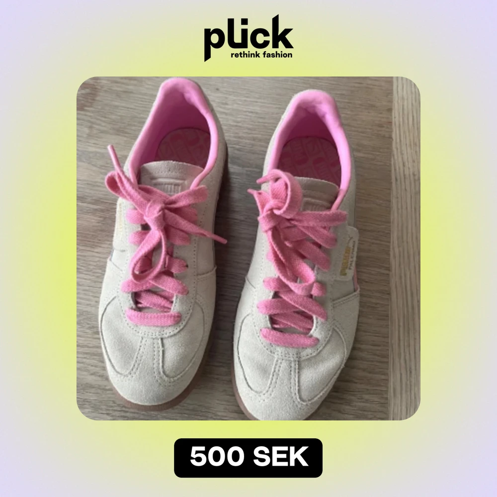 Ett par såå snygga puma sneakers som är beiga med rosa detaljer!