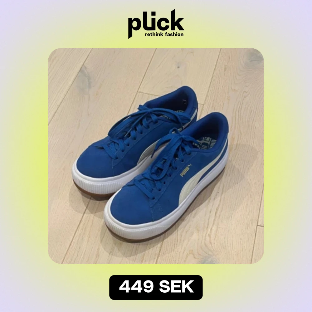 Säljer mina nästintill oanvända Puma Suede Mayu i kornblått då de ej kommer till användning, storlek 38,5 och 24,5 i cm.