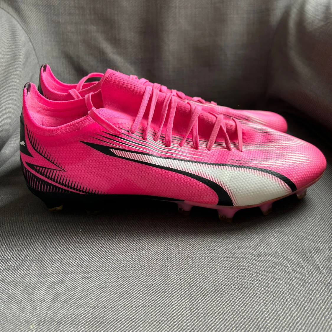 Fotbollsskor för naturgräs och konstgräs. Använda men i gott skick. Storlek: EU 42,5.
