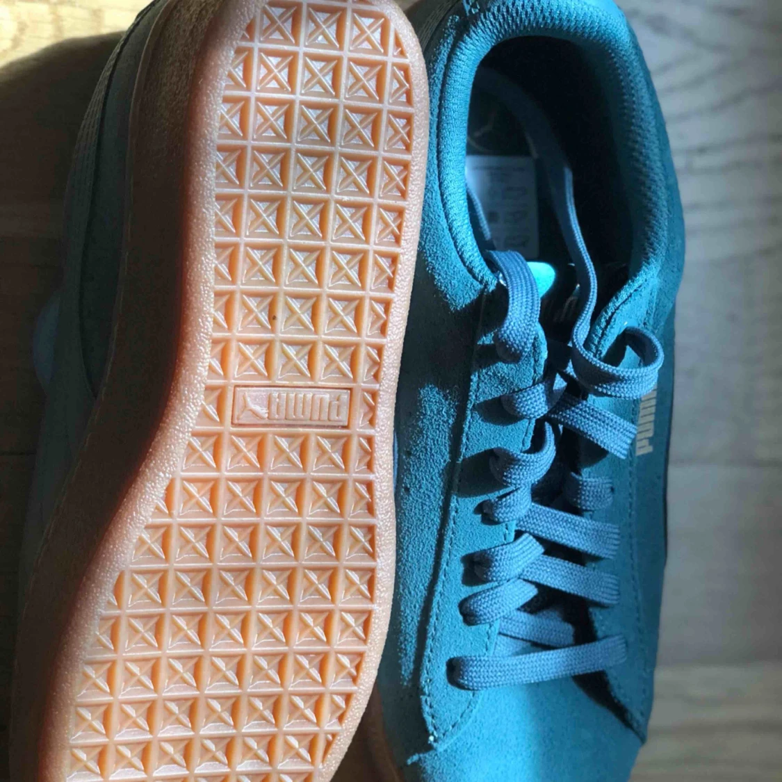 puma skor aldrig använda!! köpte spontant bara, färgen är grönishblåa väldigt fina